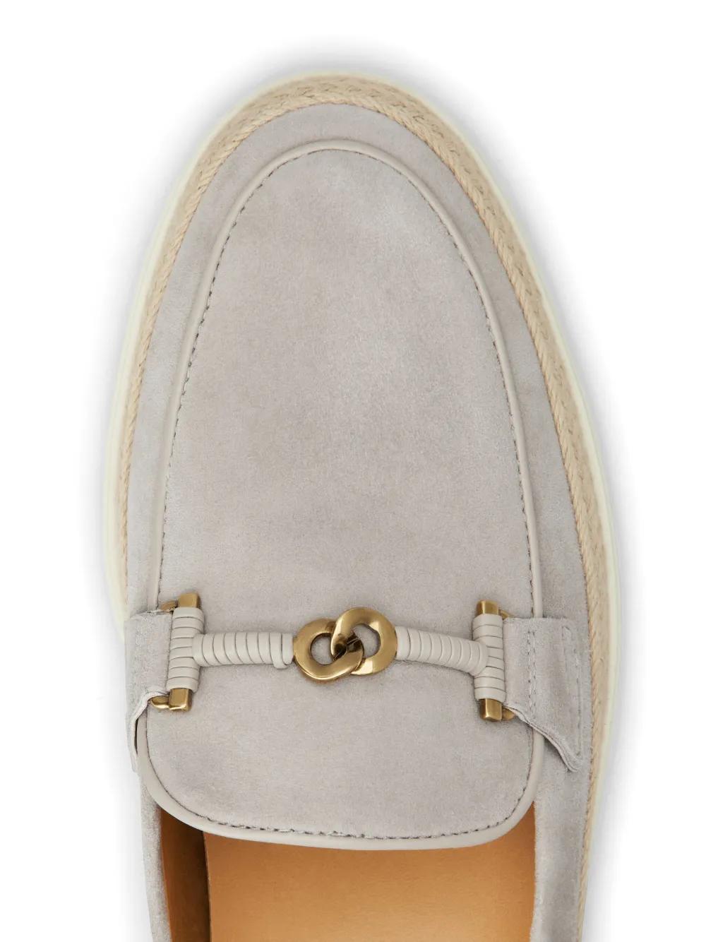 light grey leather gold-tone hardware logo at the sole almond toe slip-on style branded leather insole ridged rubber sole