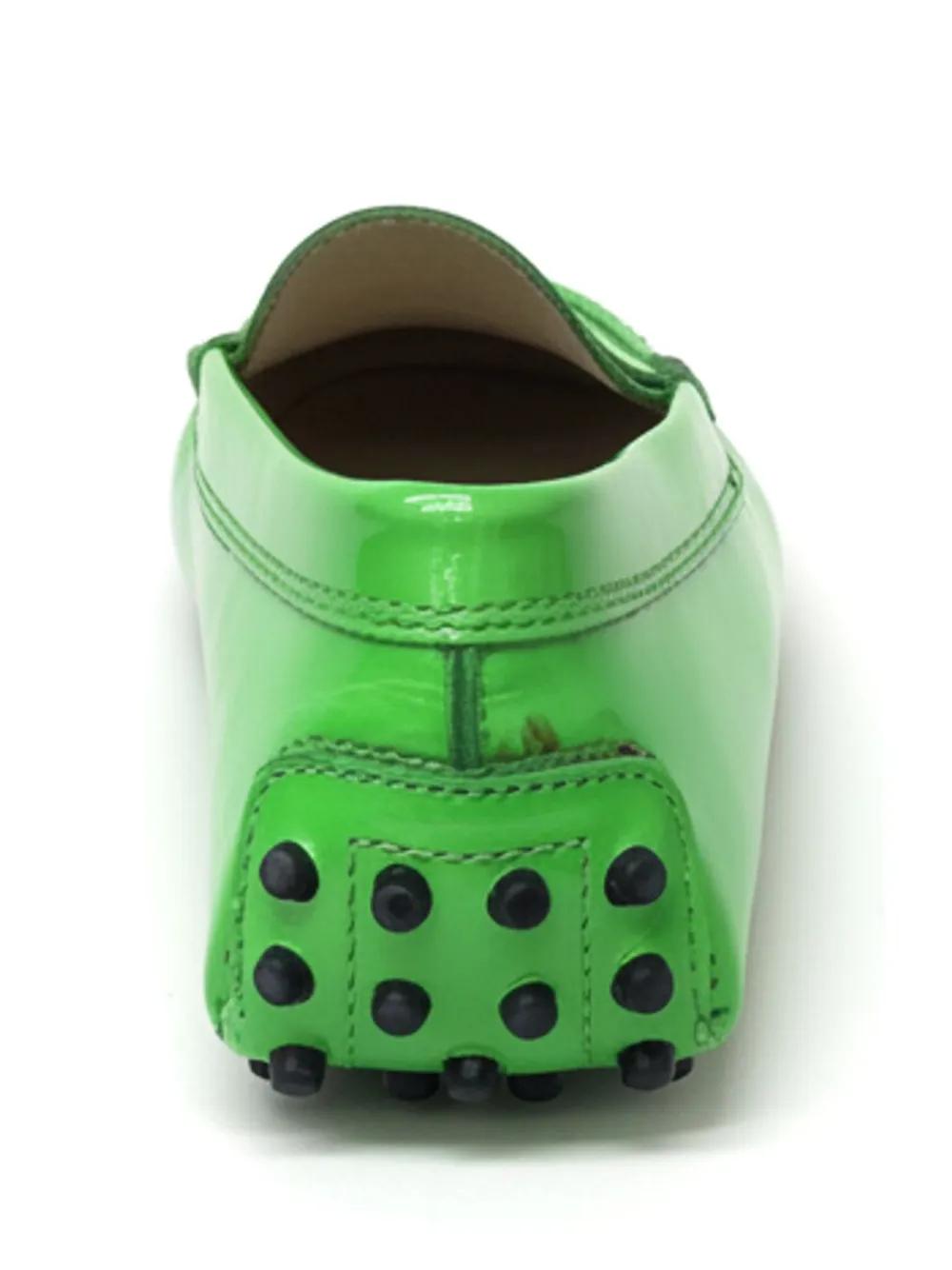 green penny bar tonal stitching rubber pebble sole slip-on style round toe
