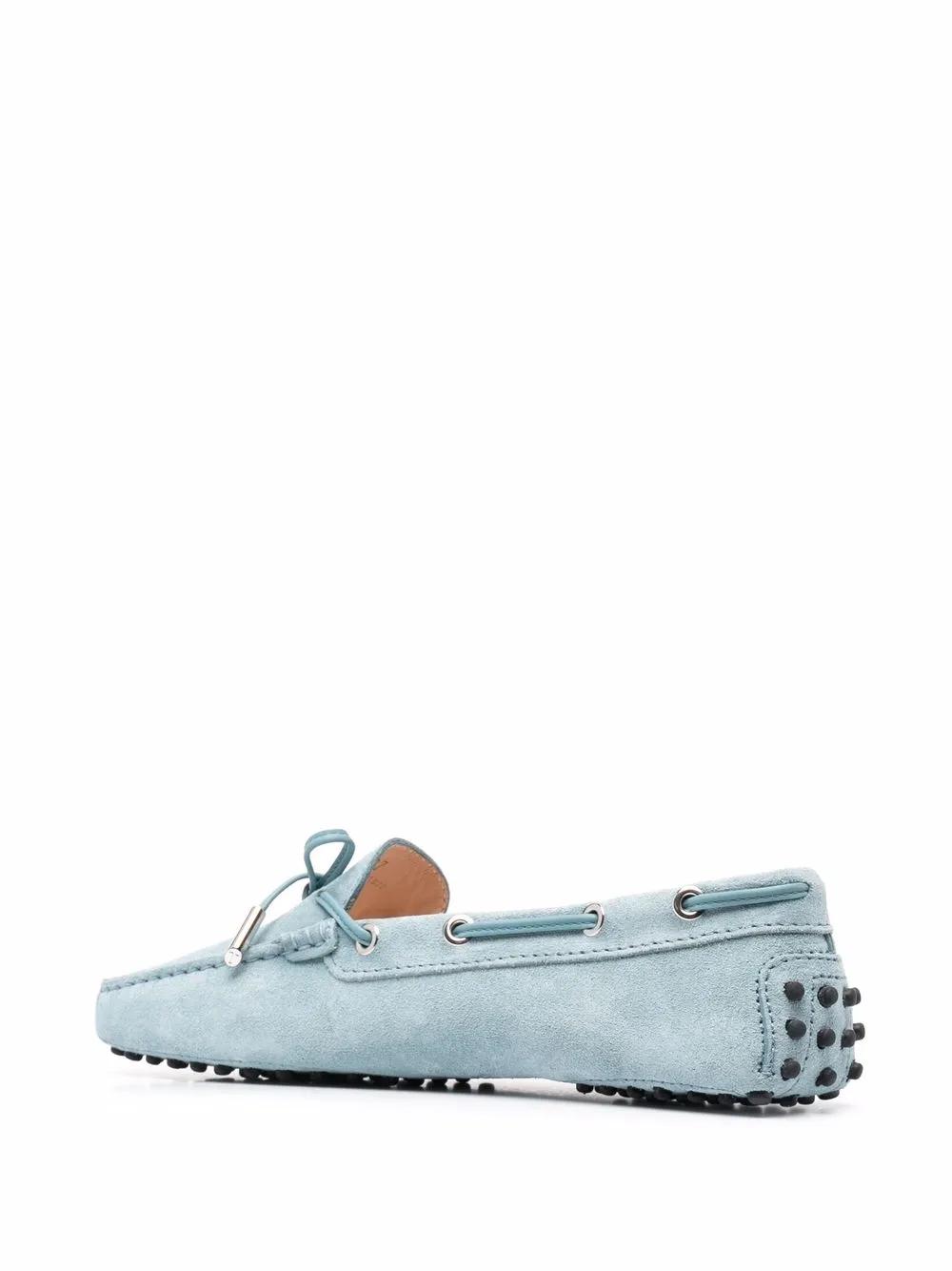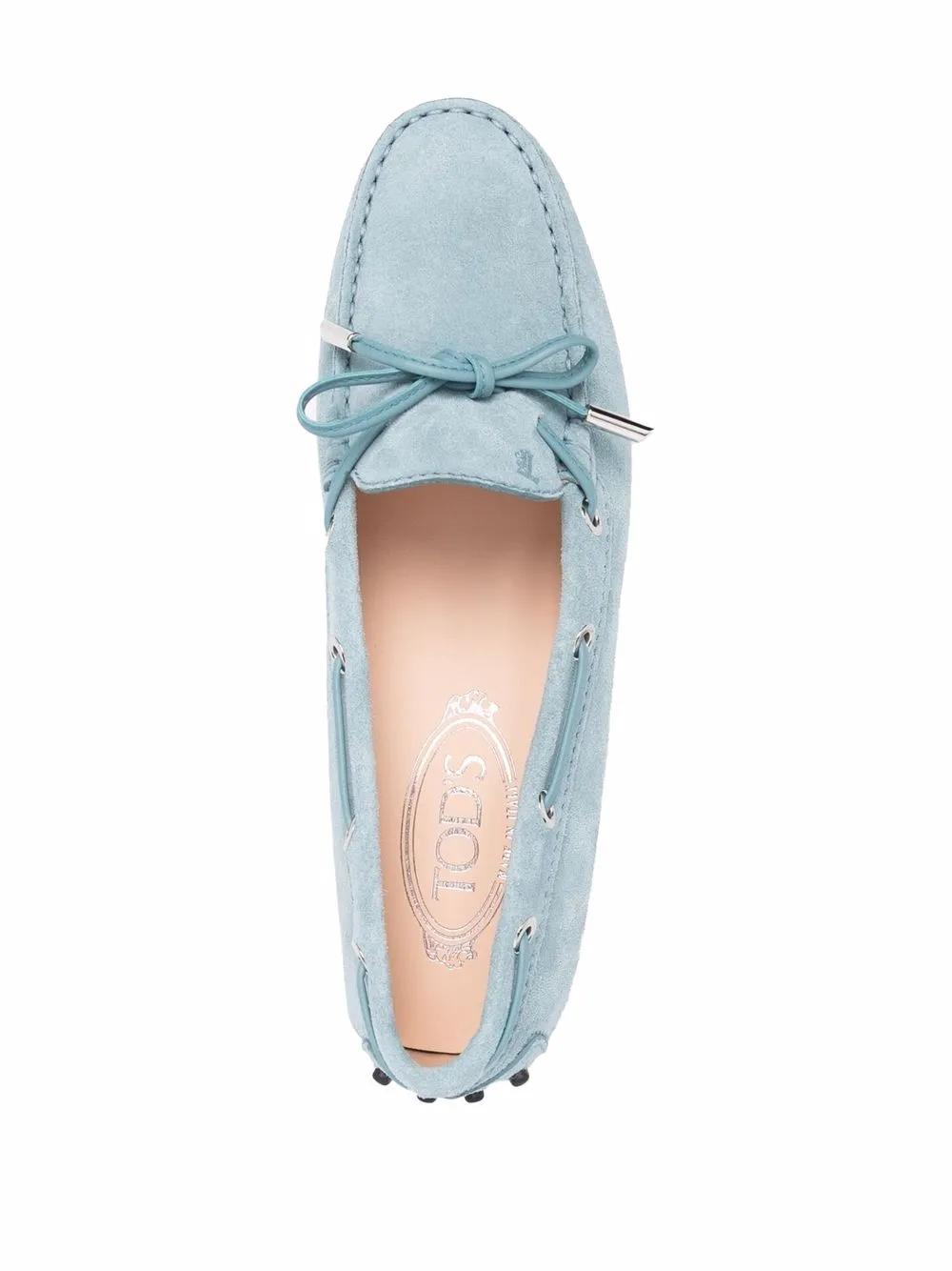aqua blue suede bow detailing round toe slip-on style branded leather insole rubber sole