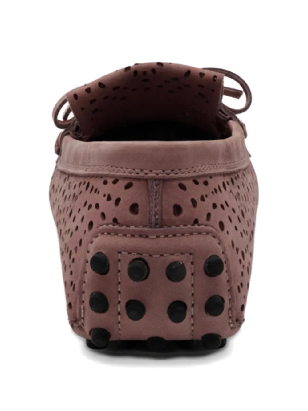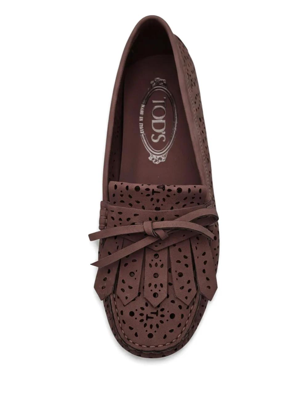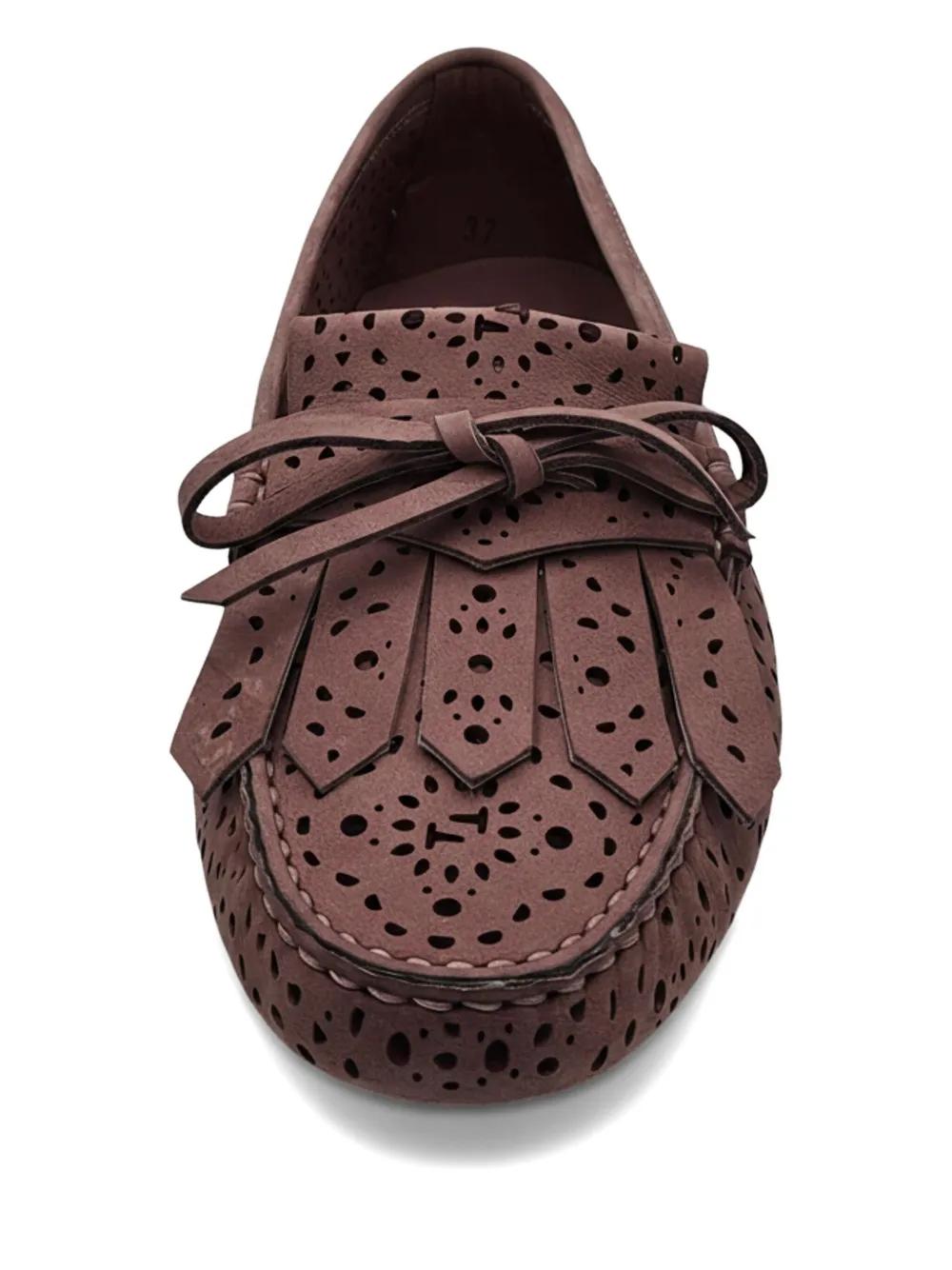 brown laser-cut details bow detail fringed trim rubber pebble sole