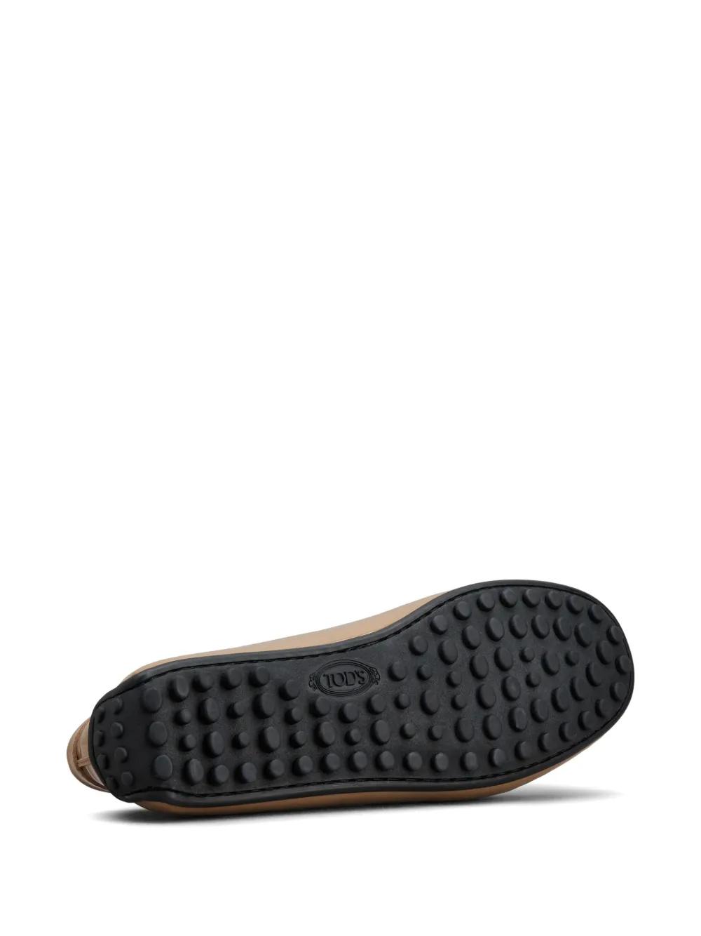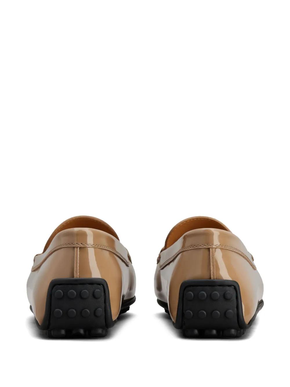 beige calf leather patent finish slip-on style branded insole round toe rubber sole