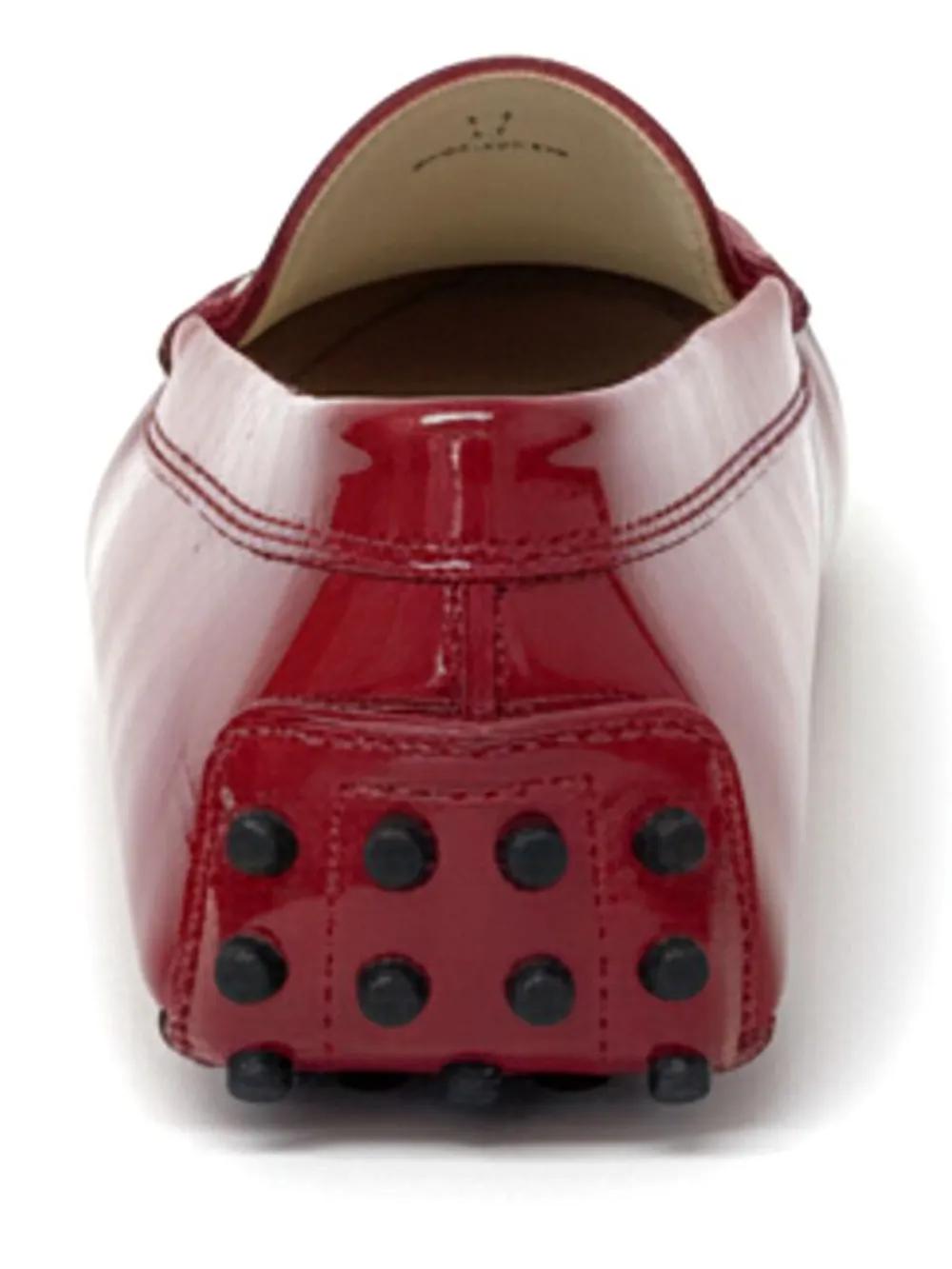 ruby red penny bar rubber pebble outsole tonal stitching round toe slip-on style