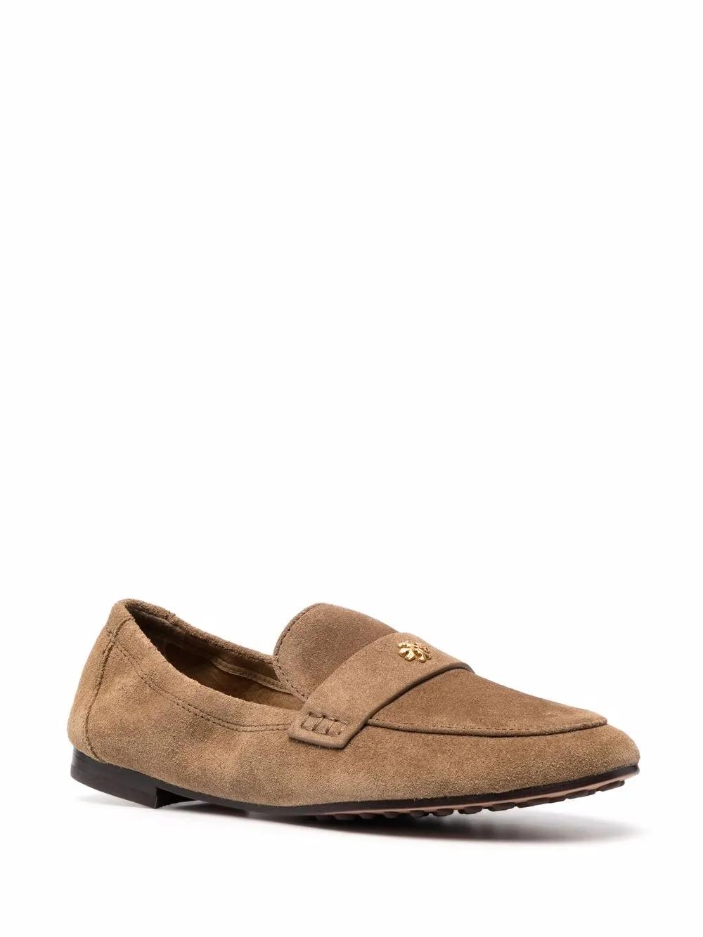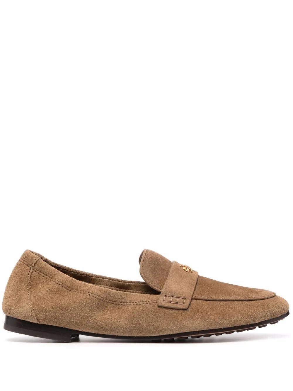 brown leather slip-on style gold-tone logo plaque gum-rubber sole