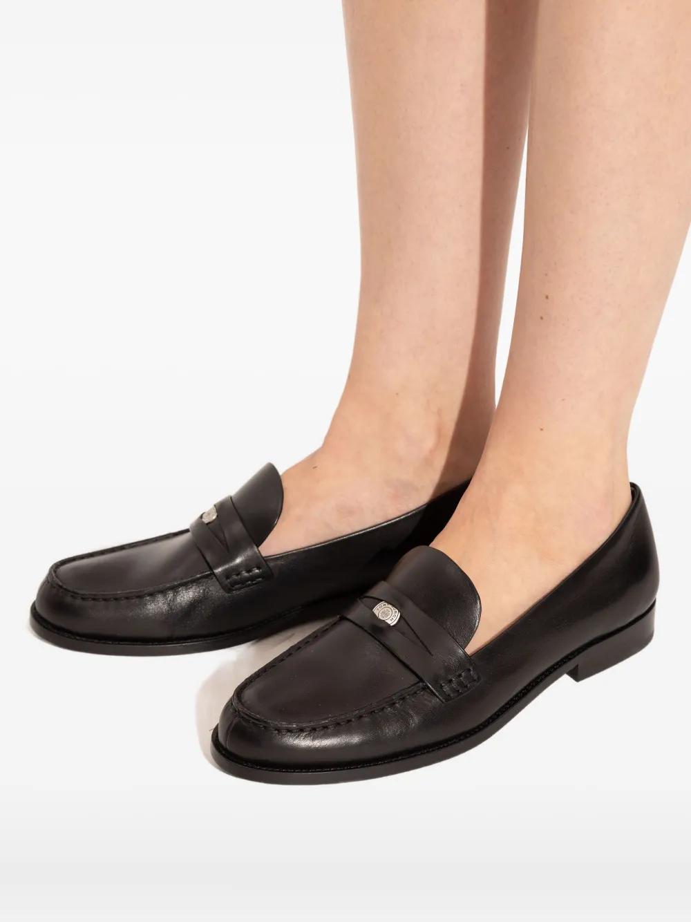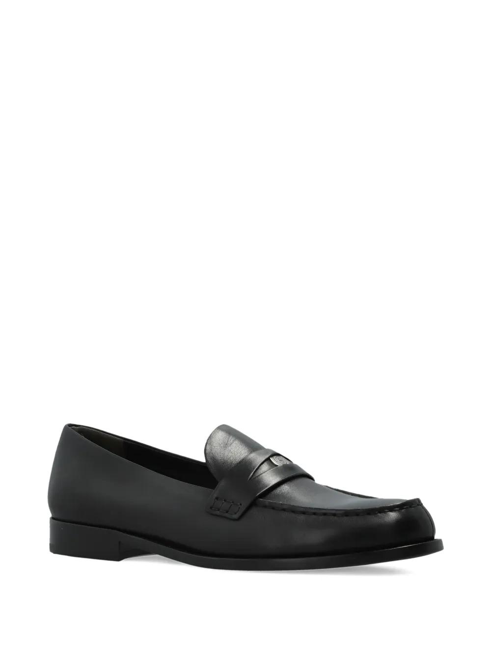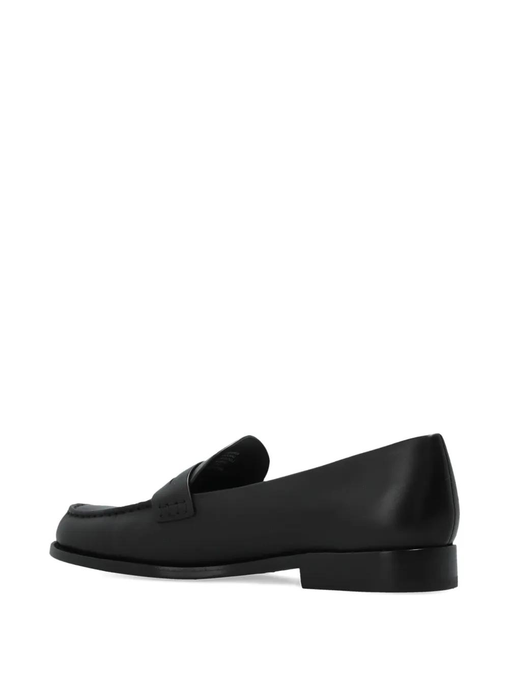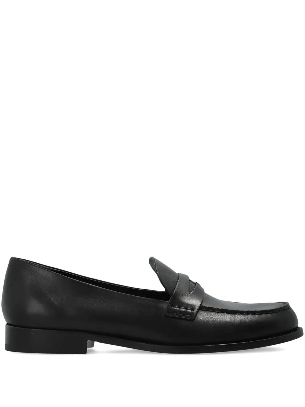 black leather-upper penny-slot round-toe flat heel tonal stitching