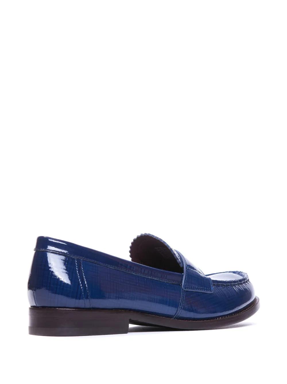 indigo blue nappa leather gold-tone logo plaque slip-on style flat leather sole