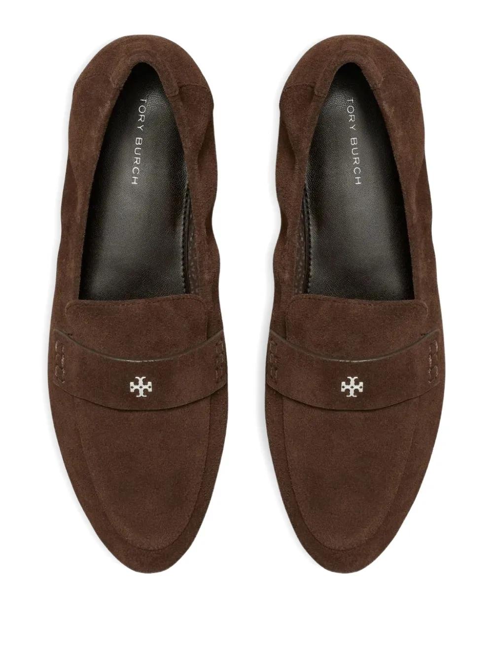 dark red slip-on style signature Double T motif gold-tone hardware moc stitching almond toe branded leather insole rubber lug sole