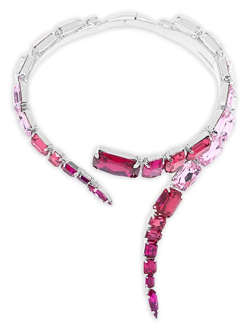 pink crystal embellishment wrap design open front metal construction rectangular crystals