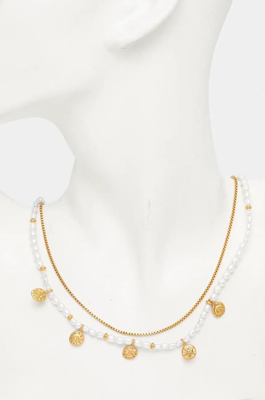 18kt gold plated brass faux-pearl embellishment shell pendant spring-ring fastening