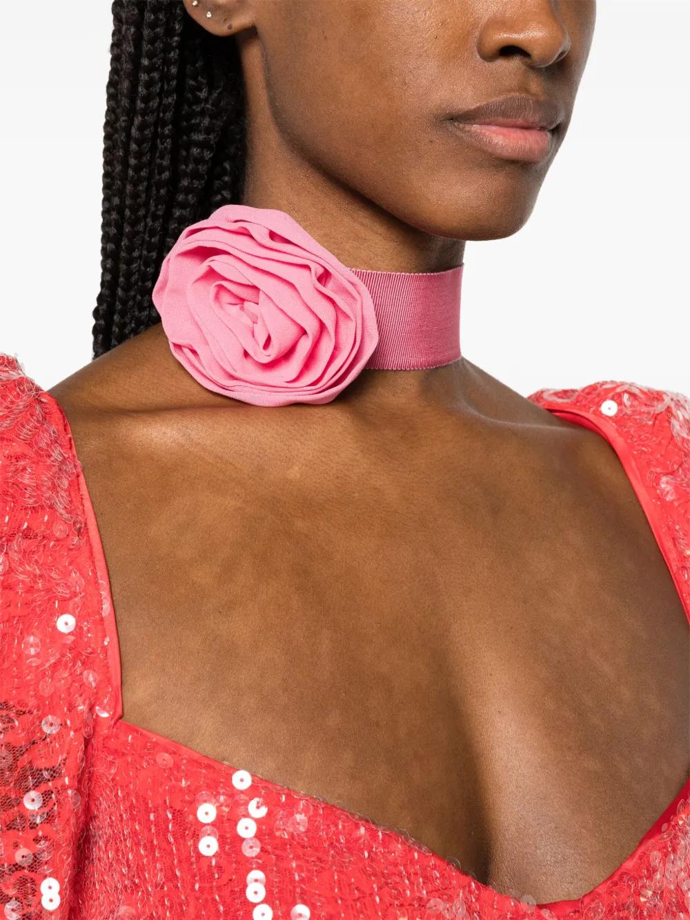 bubblegum pink cotton blend floral brooch detail logo-engraved silver-tone hardware adjustable fit lobster claw fastening This piece comes complete with a protective dust bag.