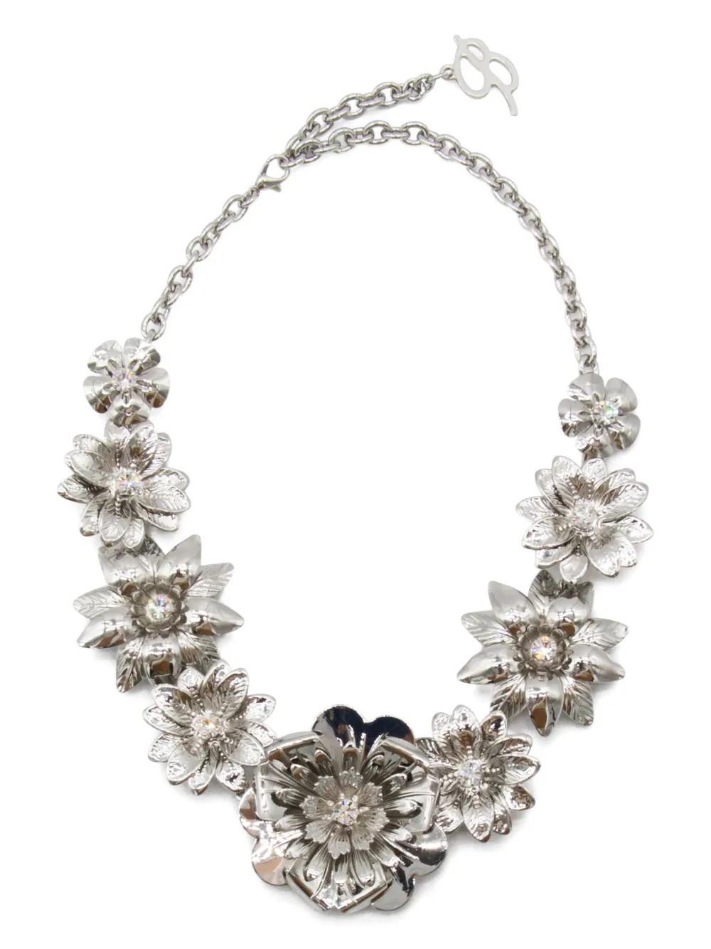 silver-tone textured flower embellishments chain necklace lobster clasp fastening