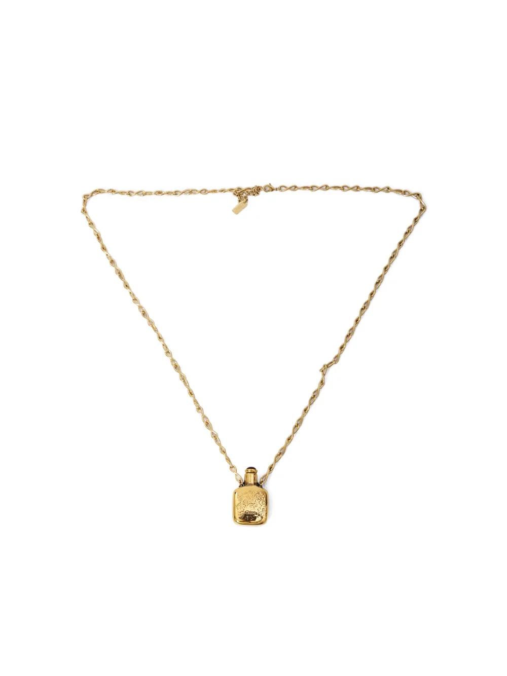 gold-tone logo plaque ornamental square vial pendant lobster clasp fastening