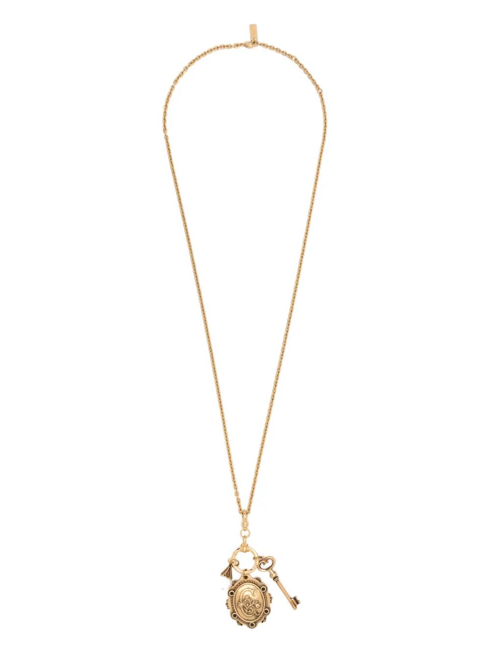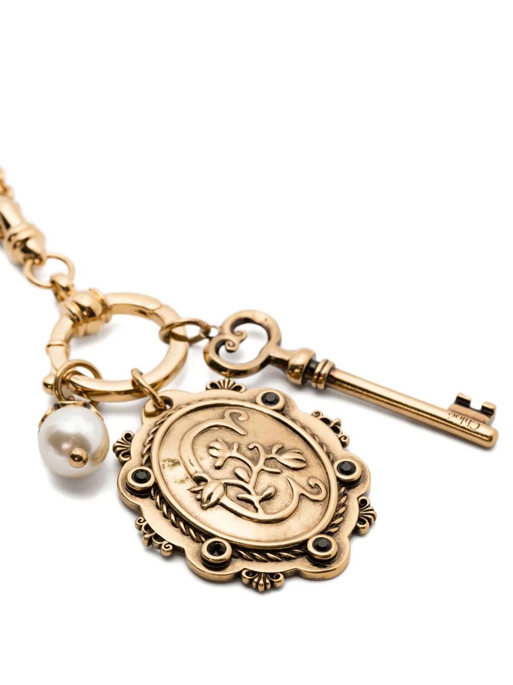 gold chain link key charm pearl charm oval charm lobster clasp fastening Normal everyday use and external agents may reduce the lustre of gemstones and gold surfaces. To maintain, use specific, non-abrasive products specially meant for cleaning jewellery. Pearls should be the last thing that you put on in the morning and the first thing you take off at night. Avoid contact with perfumes or creams, and simply wipe with a soft cloth to clean.