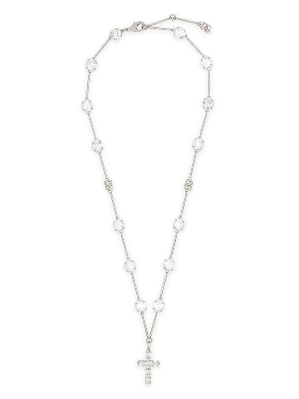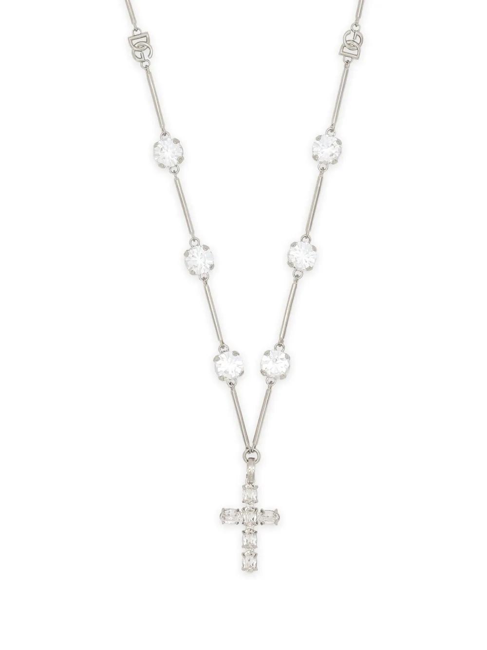 Dolce & Gabbana crystal-embellished cross-pendant necklace - Silver