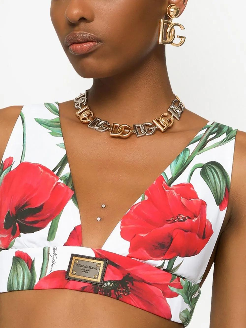 DG-logo choker necklace from DOLCE & GABBANA featuring gold-tone, silver-tone, brass, carabiner fastening, polished finish and DG logo chain.