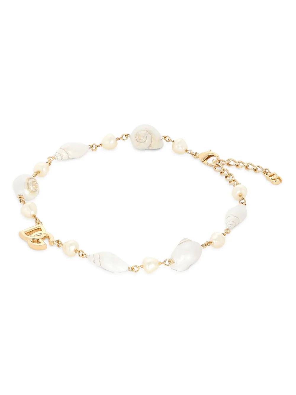 gold-tone brass rolo chain logo charm shell pendant lobster claw fastening