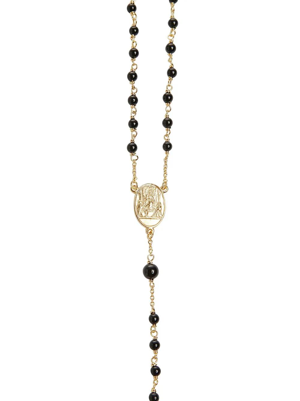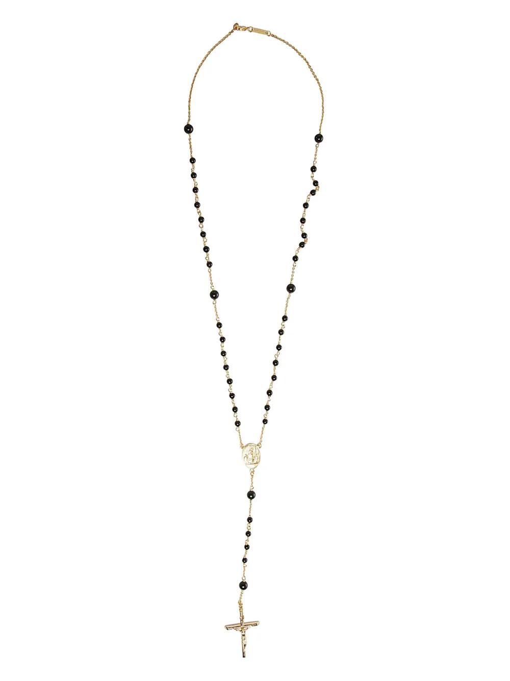 black gold plated polished finish bead detailing delicate chain cross charm engraved logo lobster claw fastening