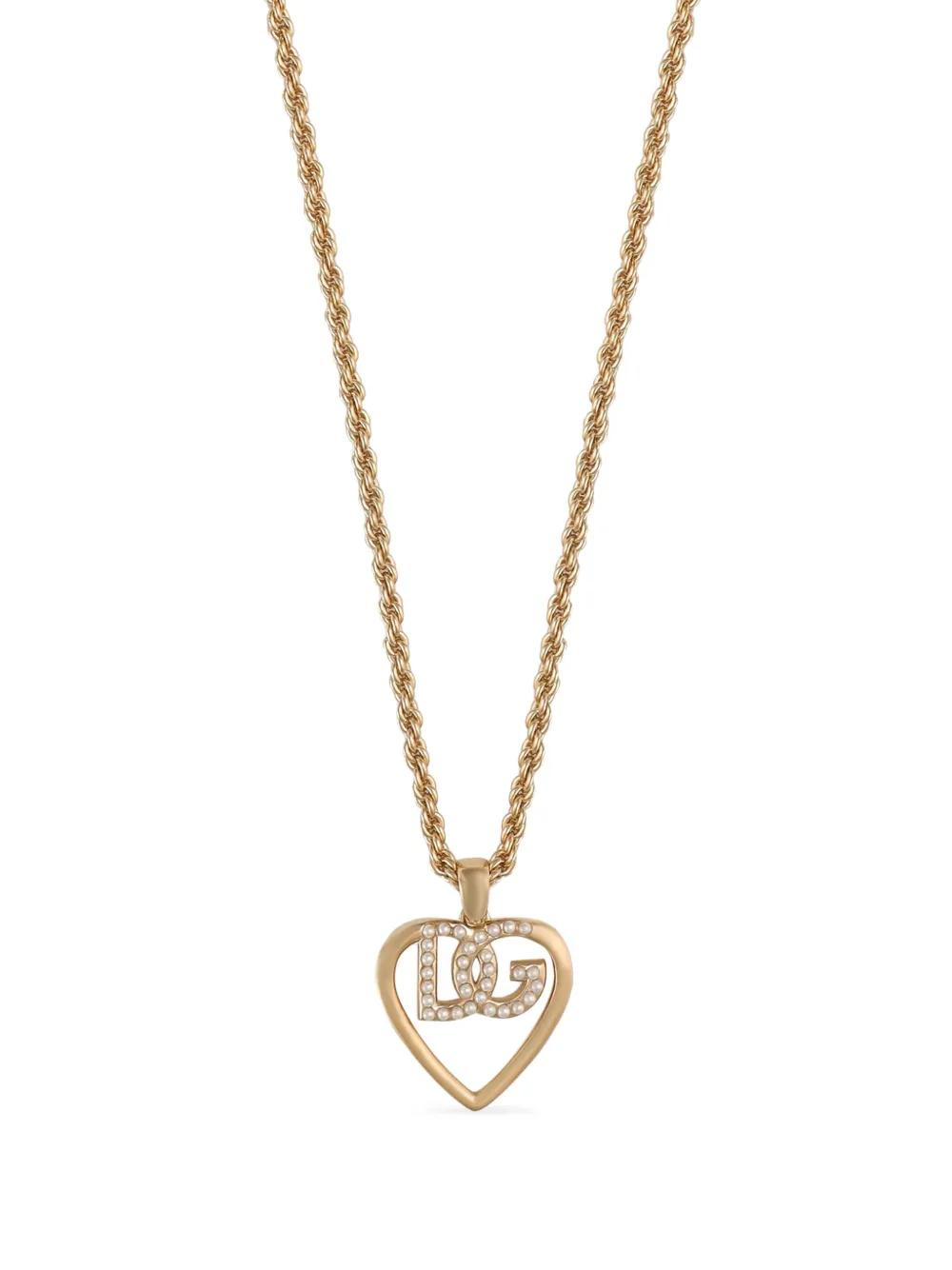 gold-tone brass polished finish logo pendant heart motif glass crystal embellishment lobster claw fastening adjustable-length chain