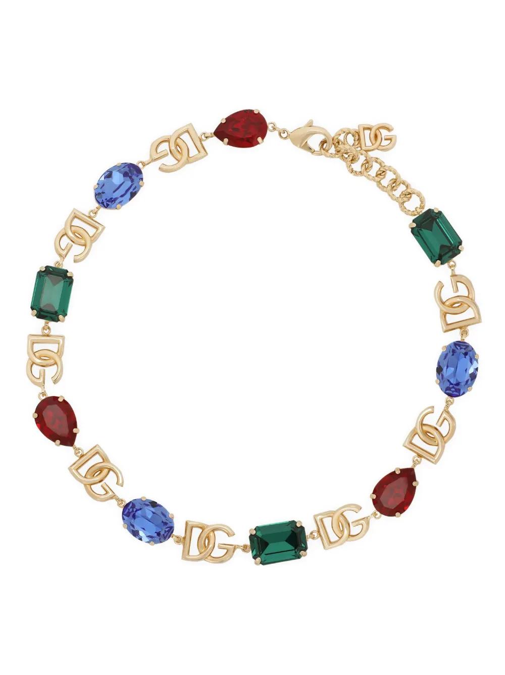 Dolce & Gabbana logo-plaque crystal-embellished necklace - Gold