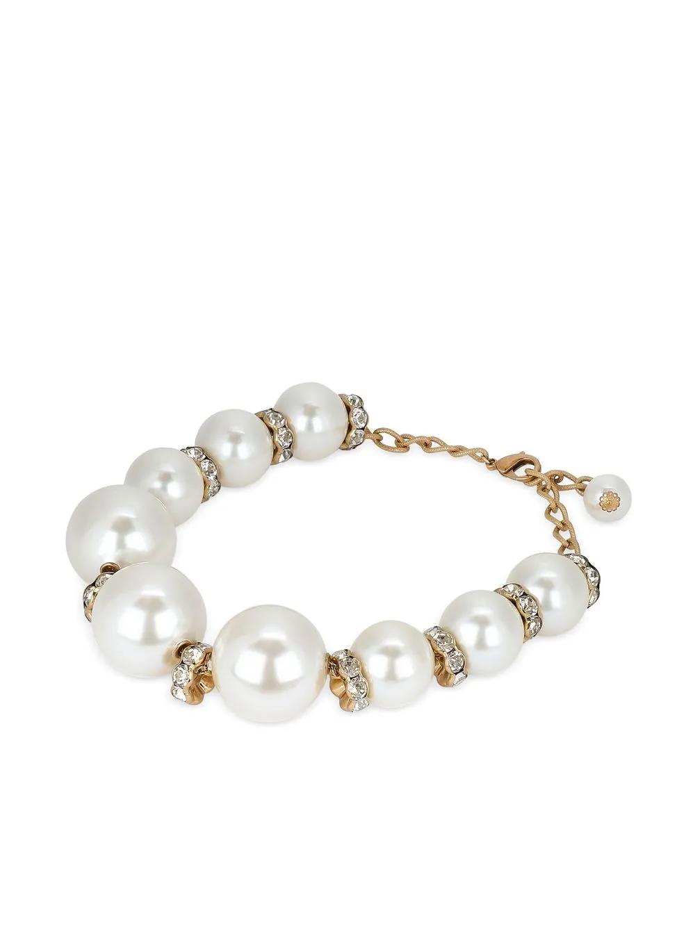 white/gold-tone brass/glass pearlescent finish sphere detailing rhinestone embellishment lobster claw fastening adjustable fit