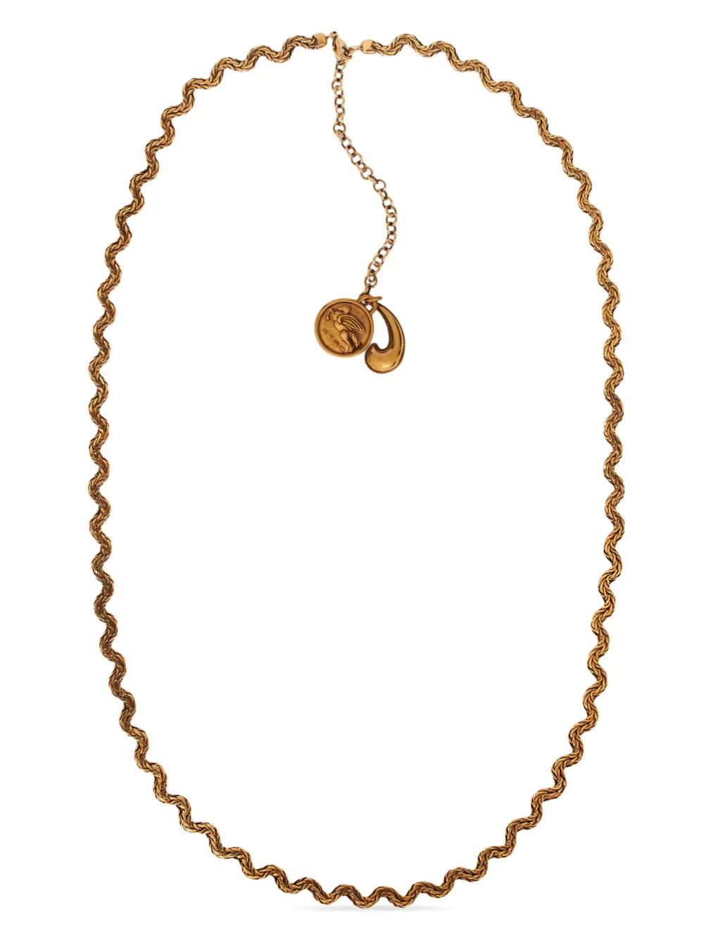 gold-tone brass polished finish logo charm snake chain adjustable-length chain lobster claw fastening