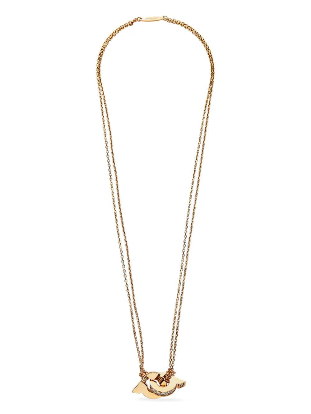 gold-tone polished finish delicate chain Double Gancini pendant crystal embellishment hook fastening