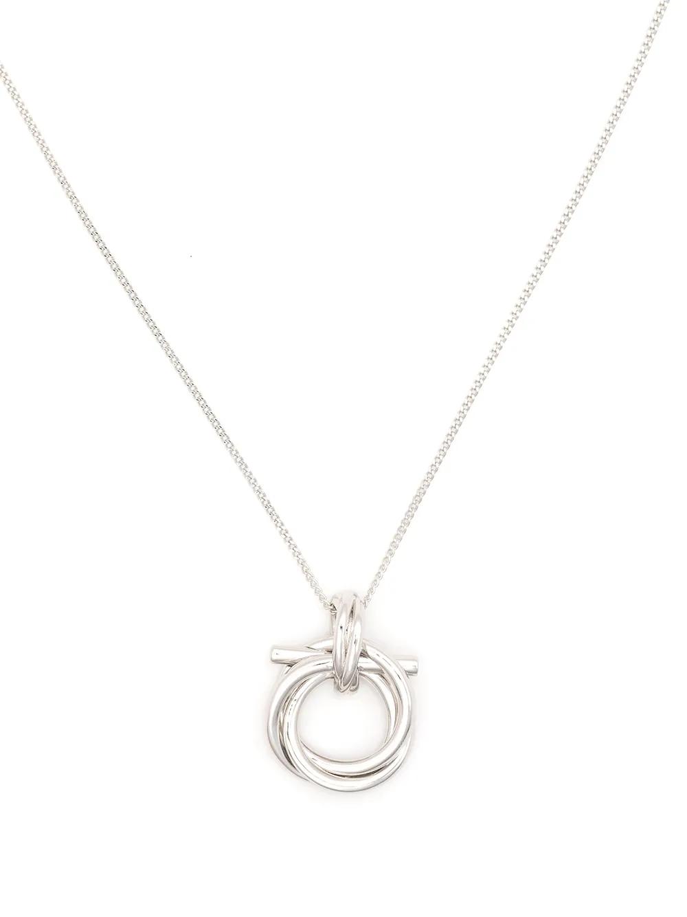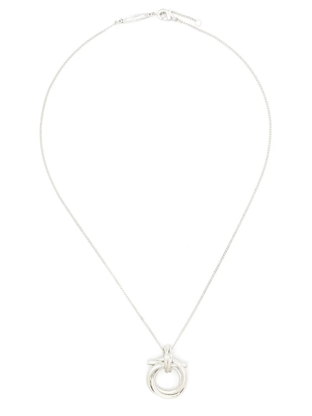 silver brass lobster claw fastening adjustable-length chain logo plaque Gancini pendant