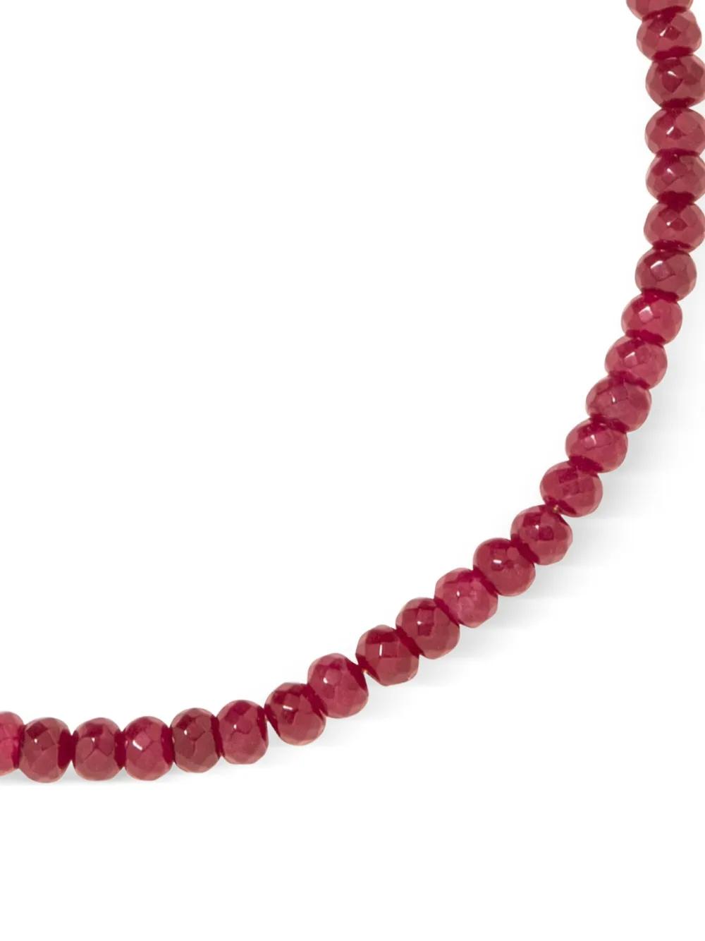 dark red 18kt gold plated beaded chain lobster clasp fastening adjustable chain length Normal everyday use and external agents may reduce the lustre of gemstones and gold surfaces. To maintain, use specific, non-abrasive products specially meant for cleaning jewellery.