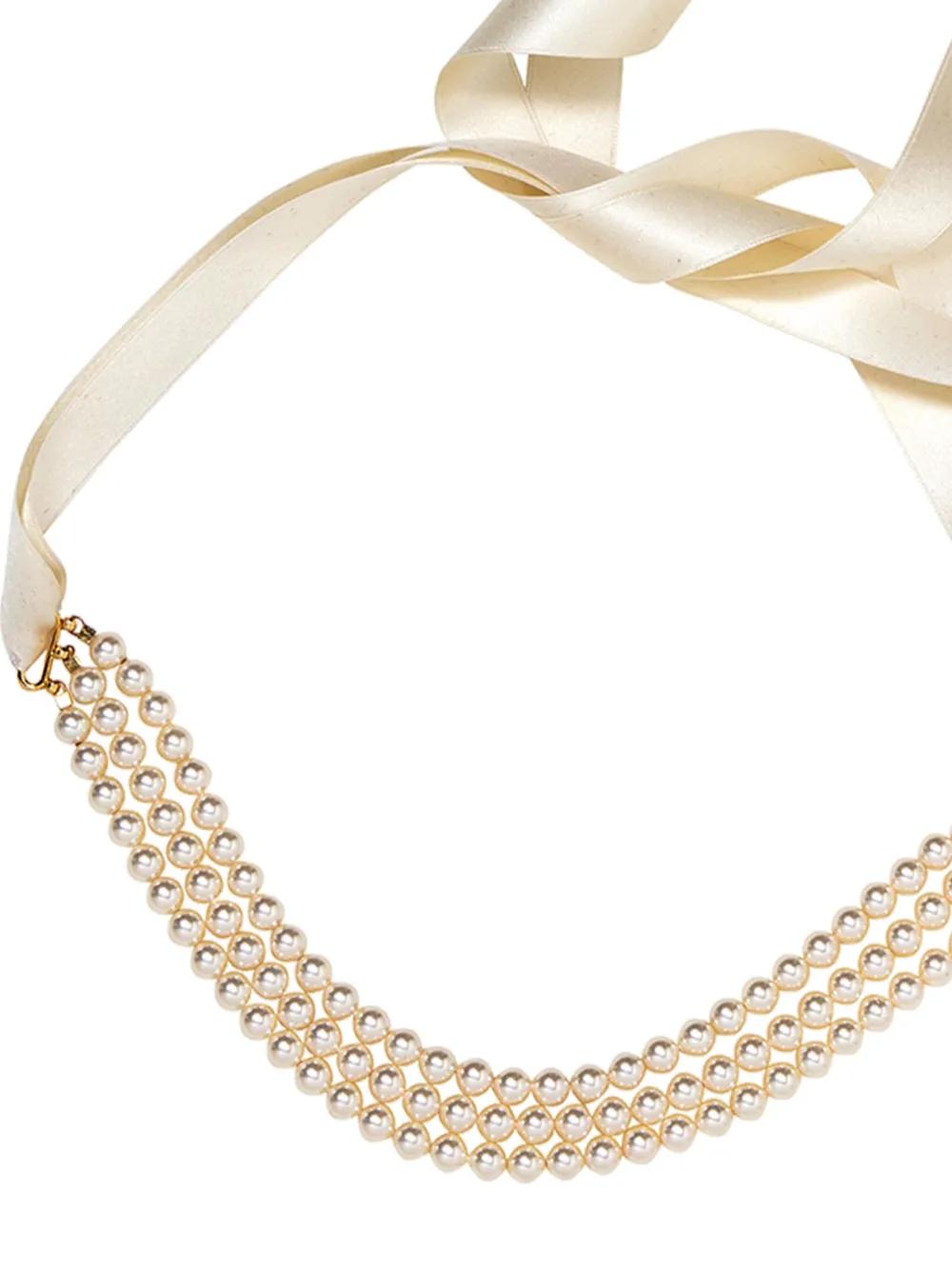white silk faux-pearl embellishment choker chain rear tie fastening