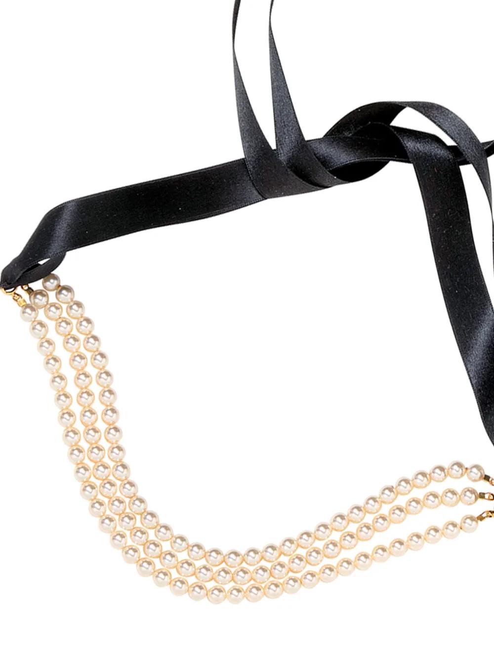 black/white velvet faux-pearl embellishment choker chain rear tie fastening