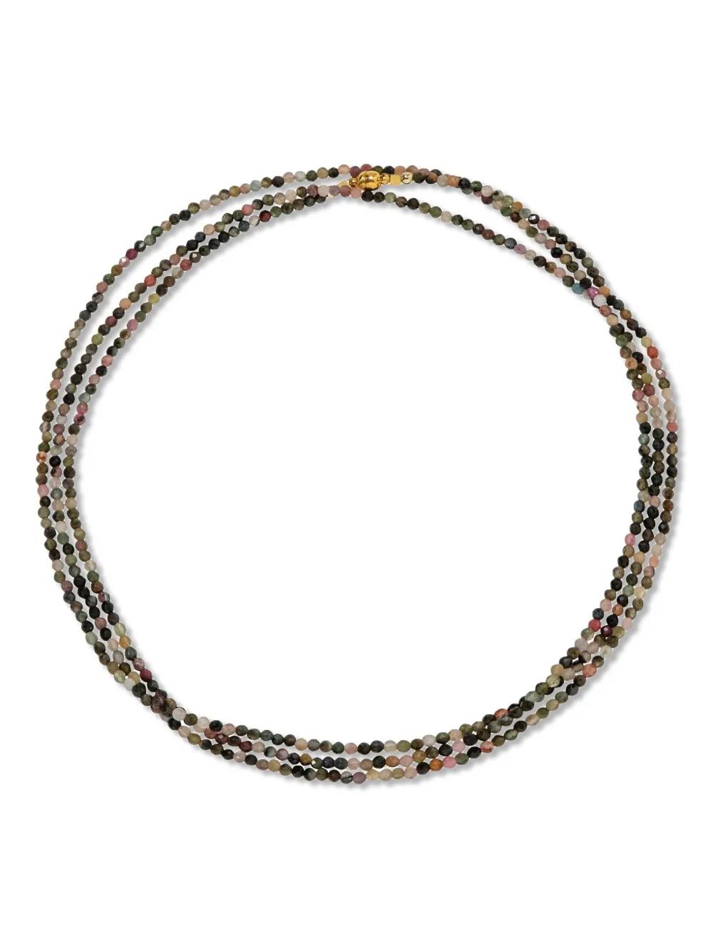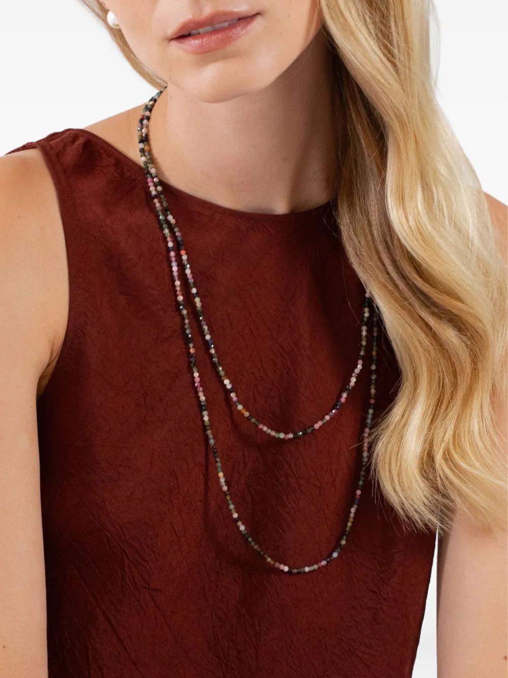 multicoloured beaded chain 18k gold plated lobster clasp fastening Normal everyday use and external agents may reduce the lustre of gemstones and gold surfaces. To maintain, use specific, non-abrasive products specially meant for cleaning jewellery.