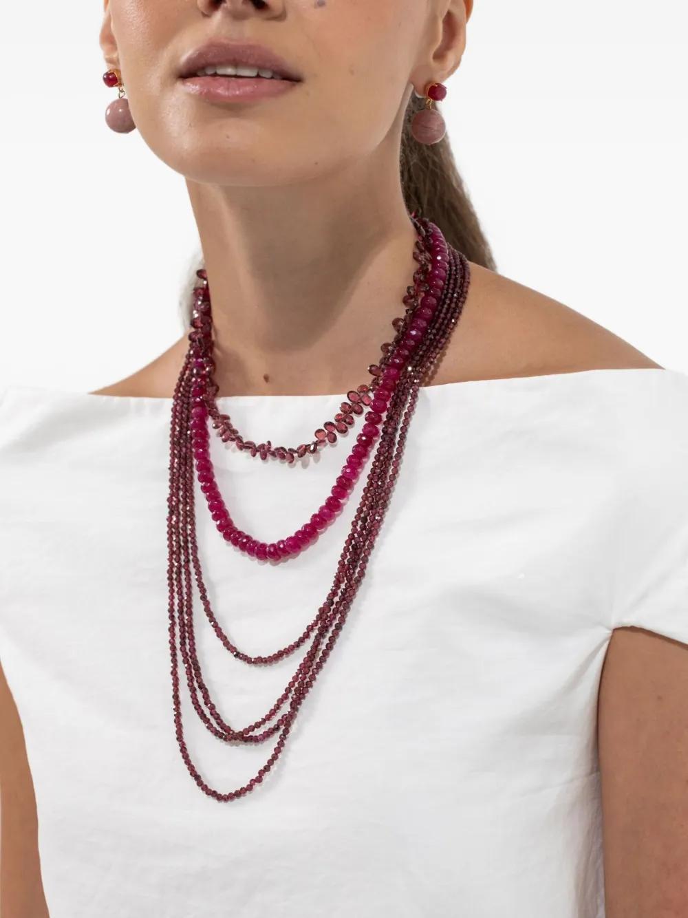 red garnet 18kt gold plated beaded design Normal everyday use and external agents may reduce the lustre of gemstones and gold surfaces. To maintain, use specific, non-abrasive products specially meant for cleaning jewellery.