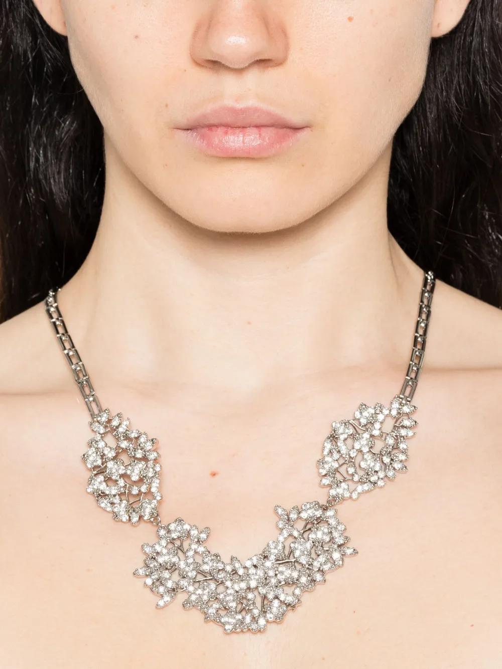 silver-tone three floral clusters embellishments chain-design lobster claw fastening
