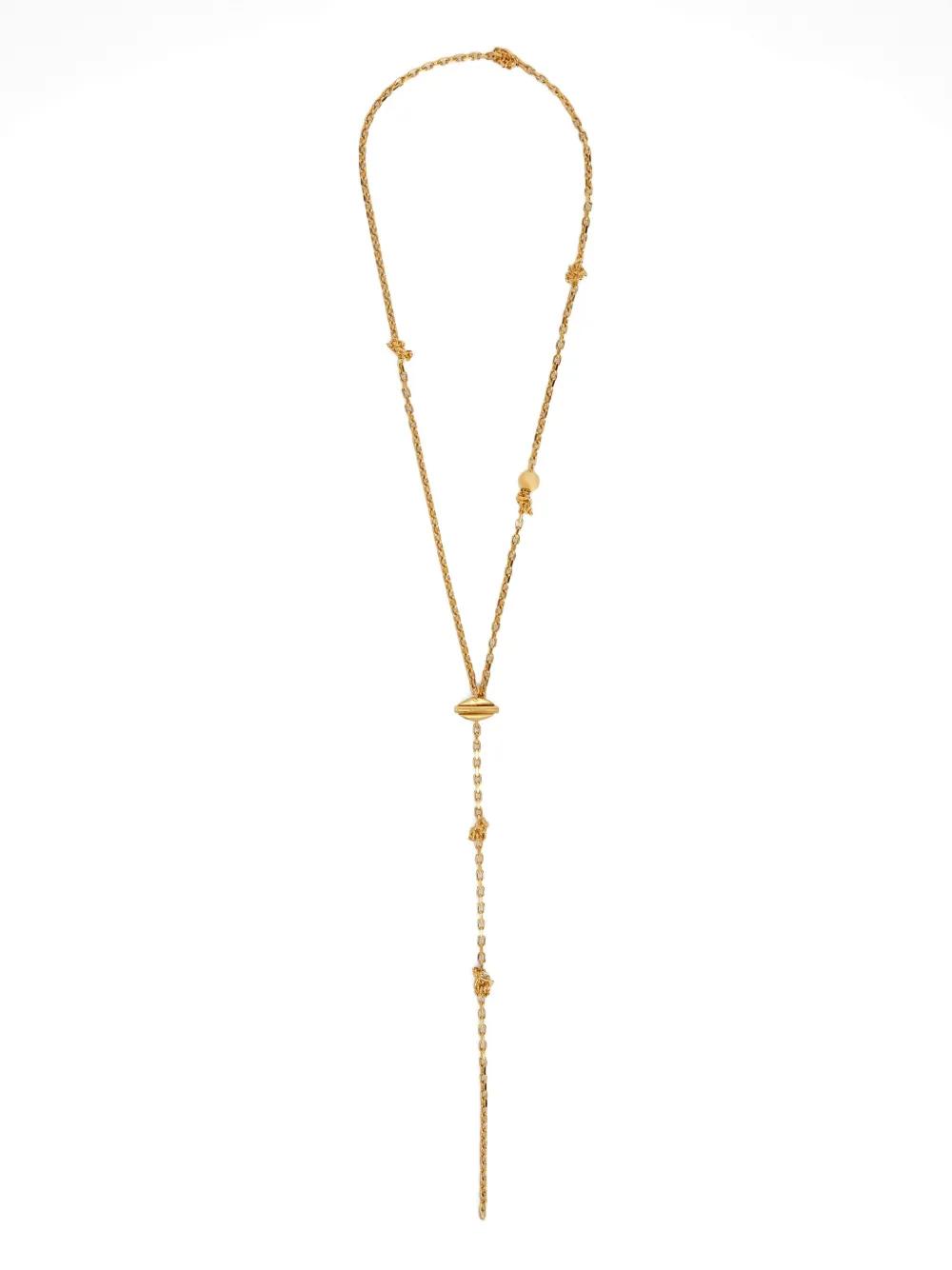 gold-tone freshwater pearl pendant engraved logo adjustable chain length T-closure