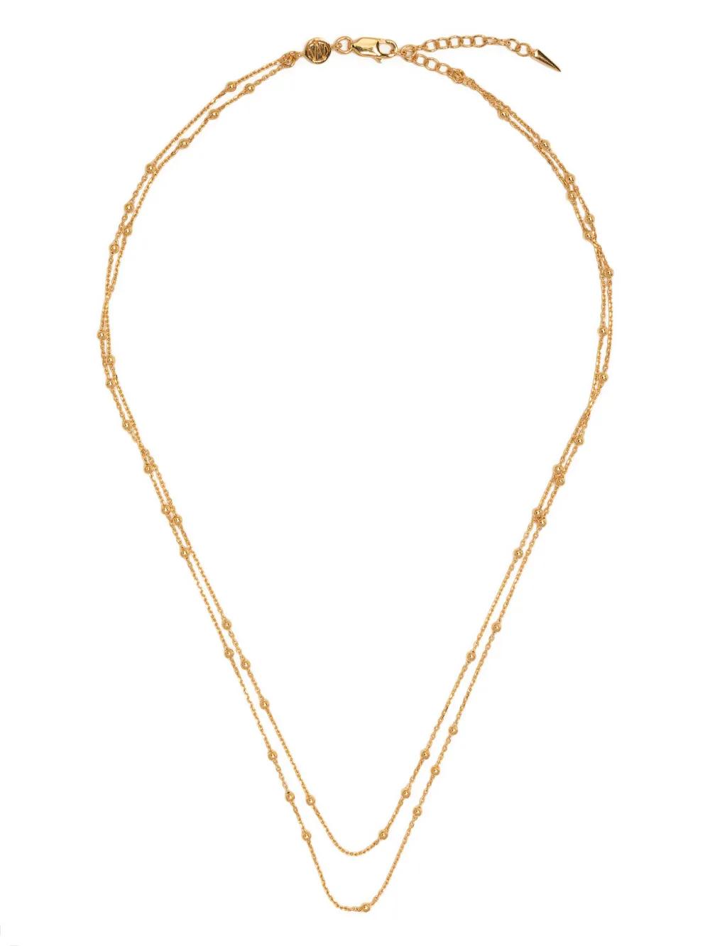 gold plated sterling silver layered design bead chain lobster claw fastening adjustable-length chain