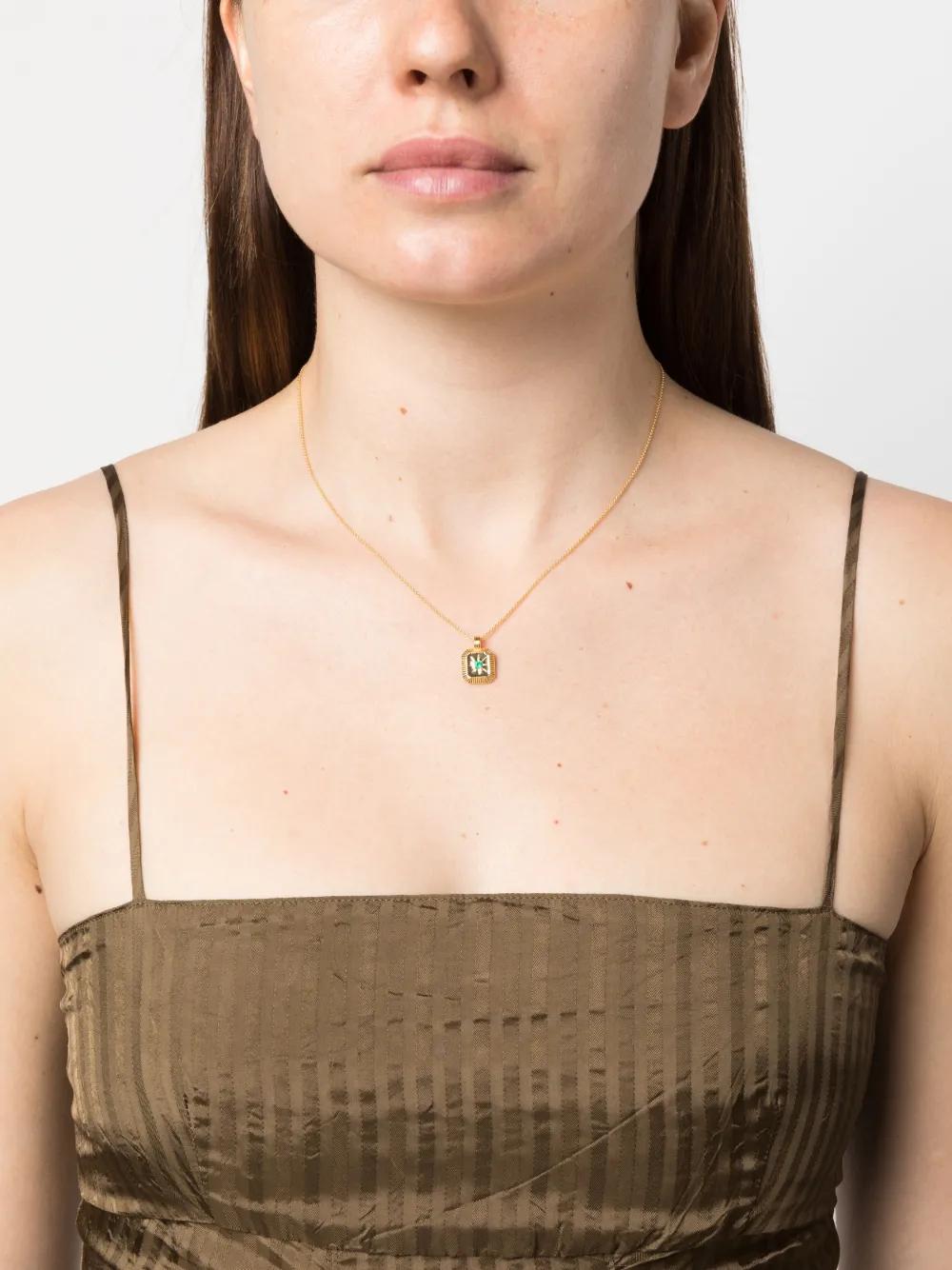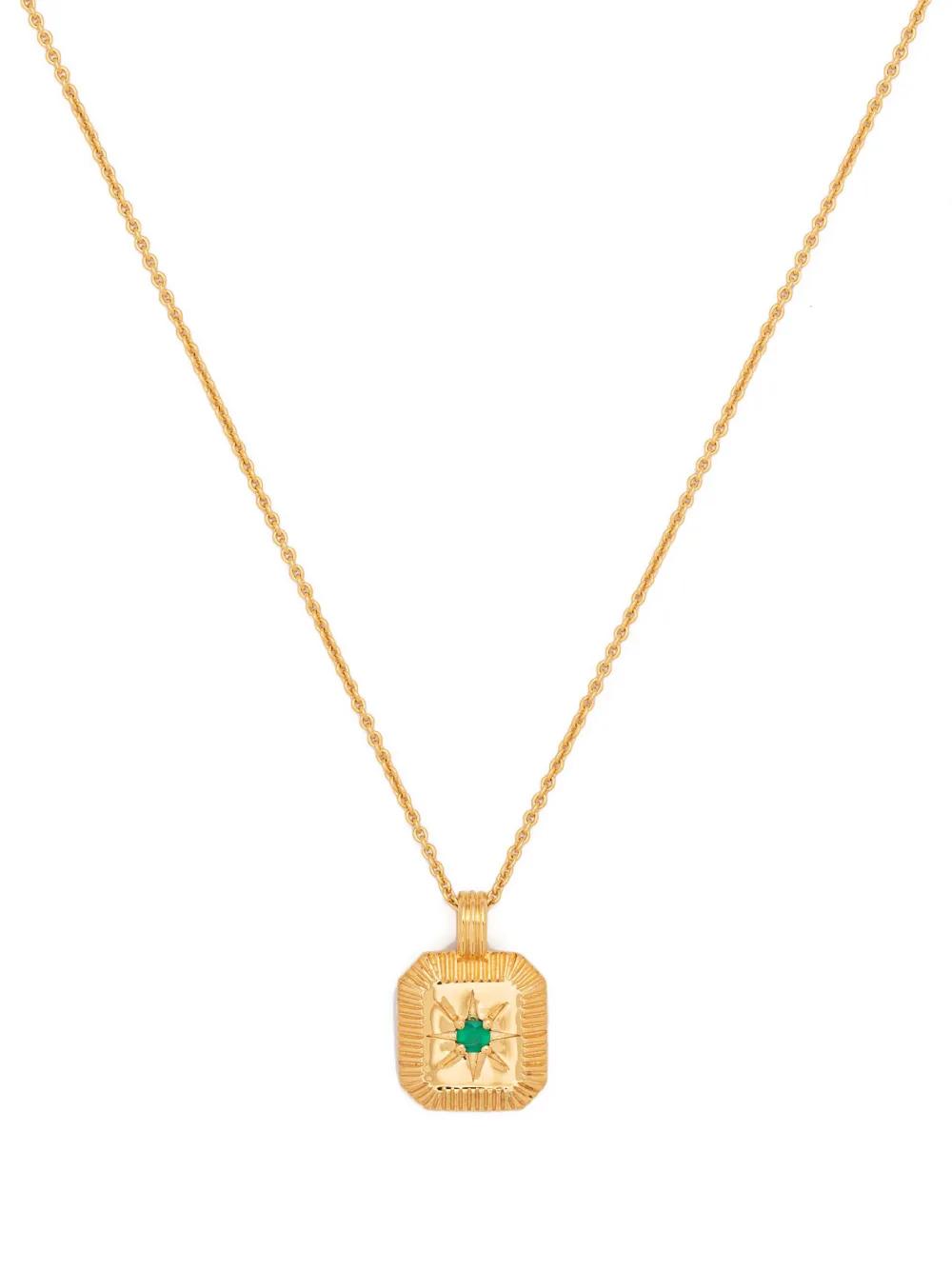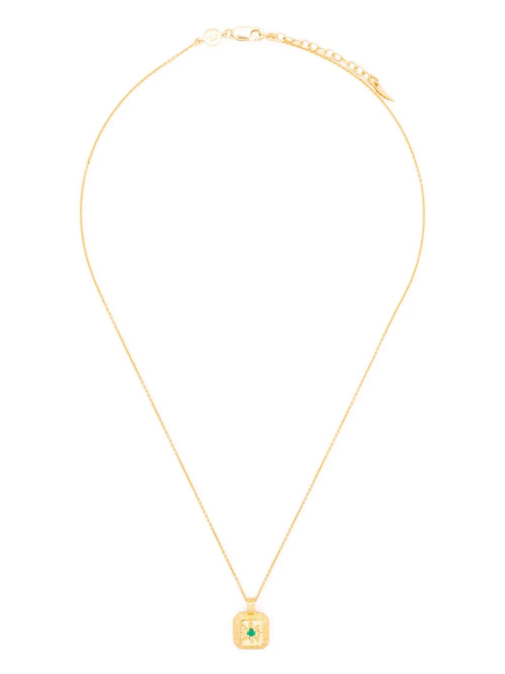 gold-tone/emerald green 18kt gold plated chalcedony curb chain star pendant lobster claw fastening