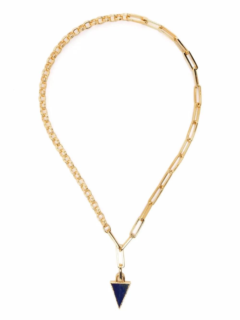 gold-tone/blue 18kt gold plated brass/lapis lazuli triangle shape chain-link detailing clasp fastening