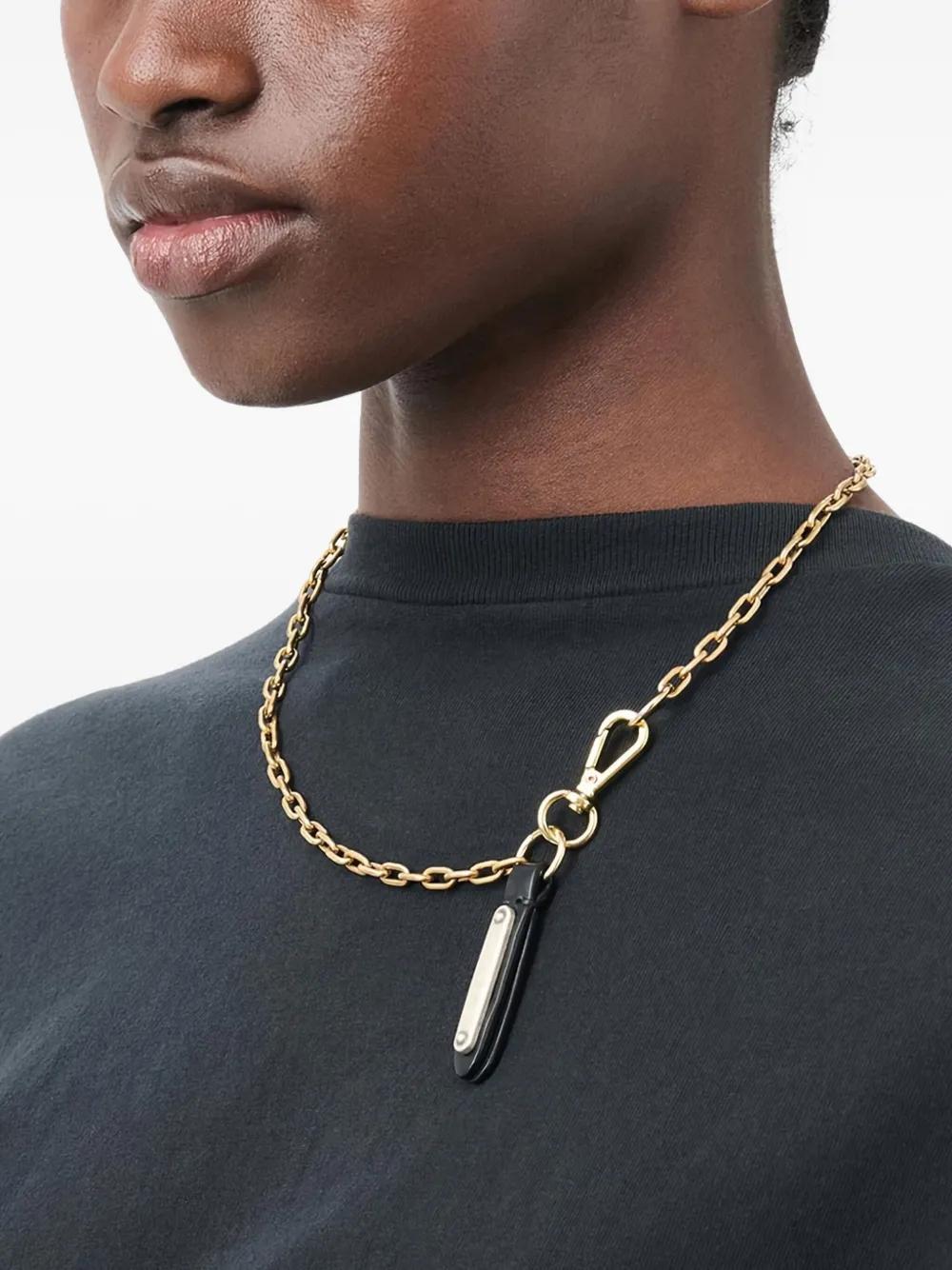 gold-tone gold-plated chain-link detailing lobster clasp fastening rectangle pendant engraved logo