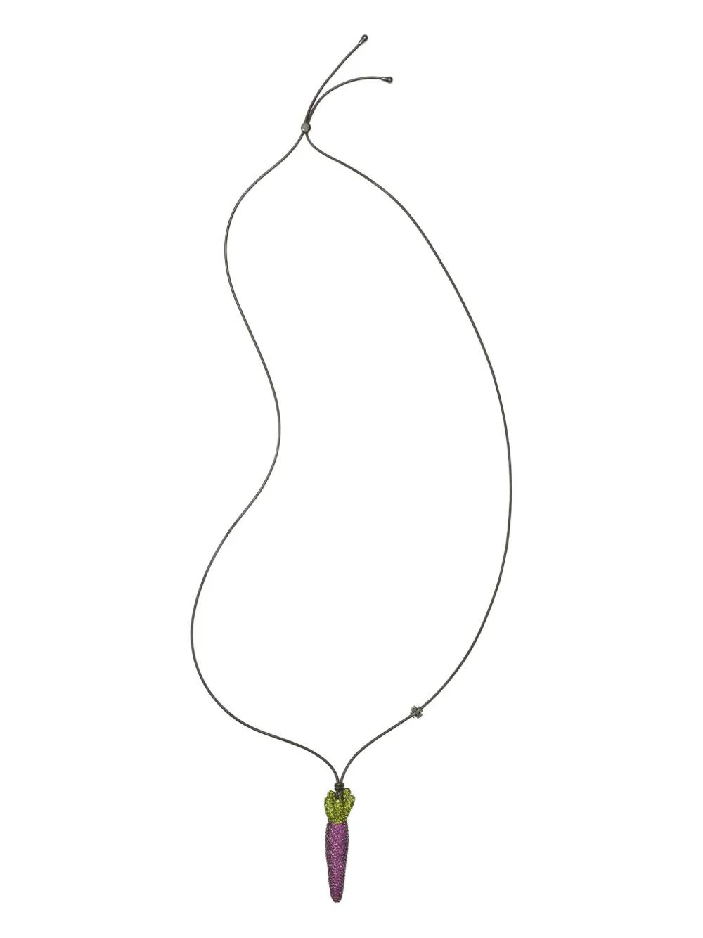 silver-tone carrot pendant leather cord crystal embellishment adjustable fastening