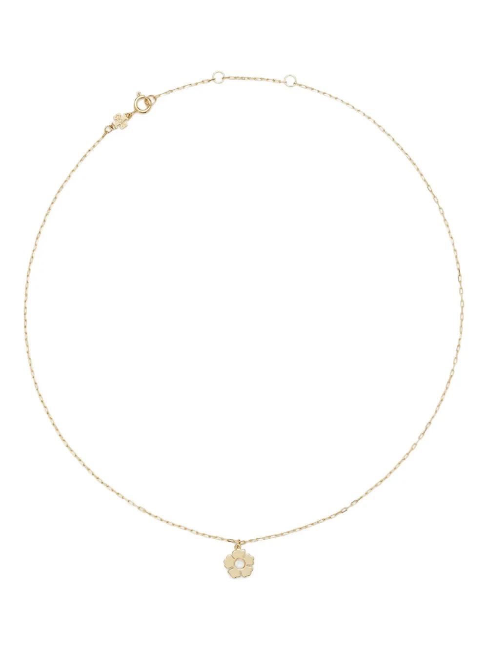 gold chain necklace flower pendant pearl centre delicate design secure clasp