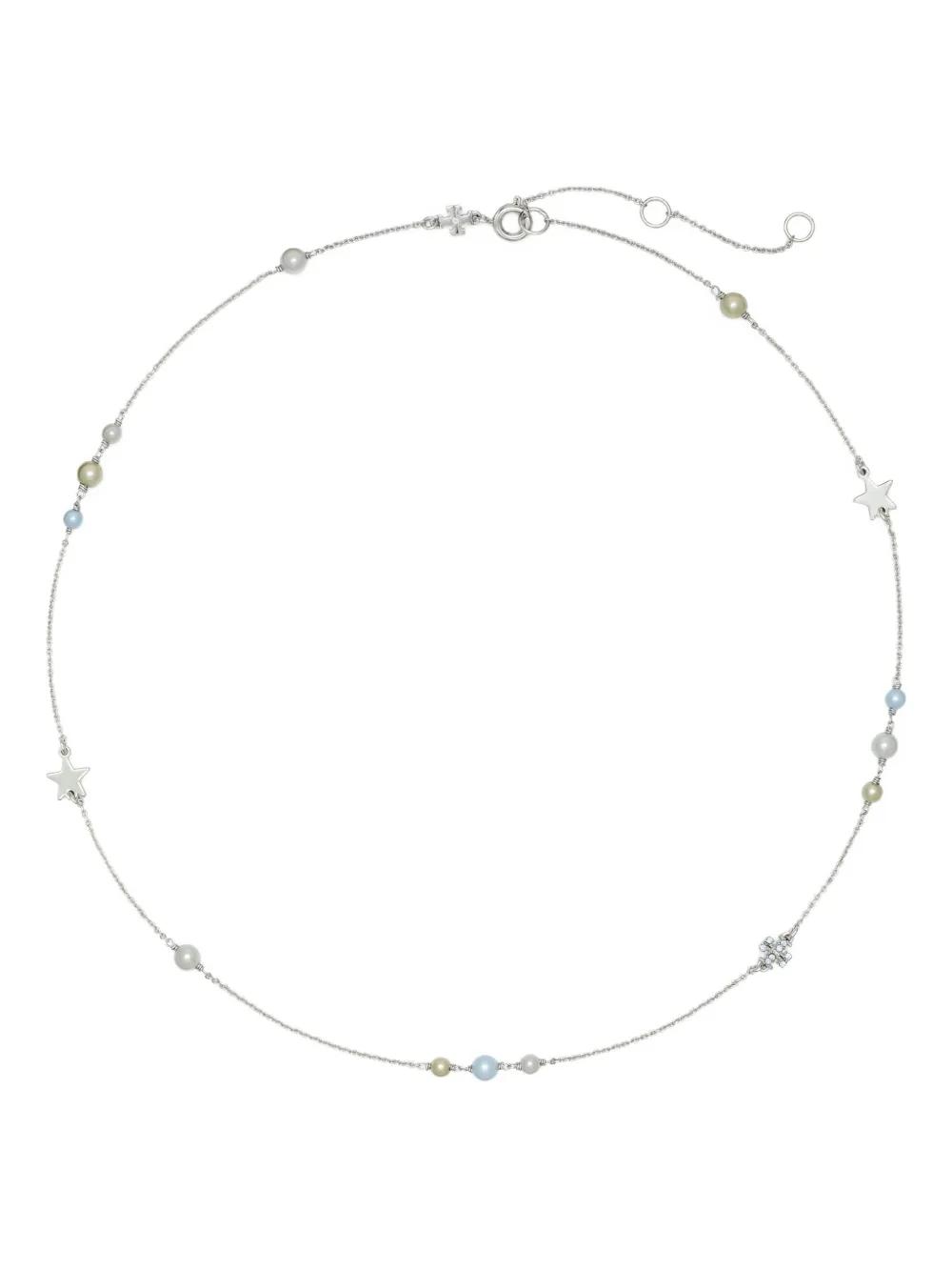 silver-tone pearl embellishment star embellishment adjustable length spring-ring clasp fastening