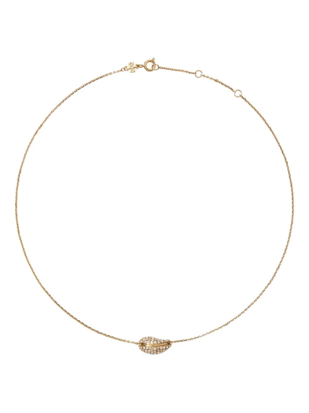 light brass shell pendant pave diamonds delicate chain lobster claw fastening gold chain