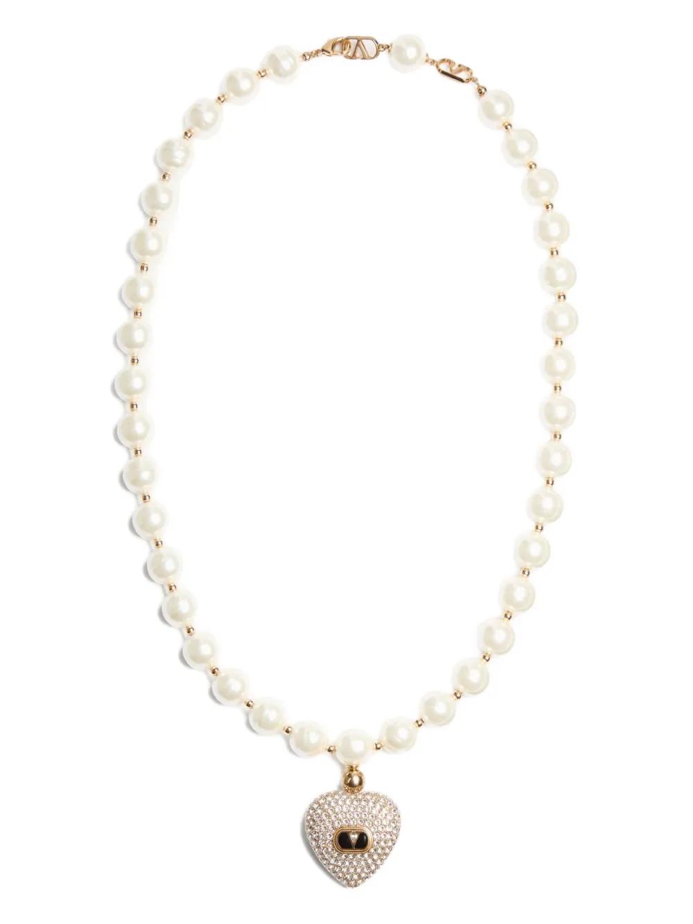 white lobster claw fastening gold-tone hardware VLogo Signature faux-pearl embellishment heart pendant crystal embellishment adjustable-length chain
