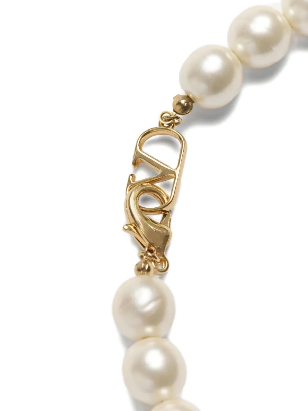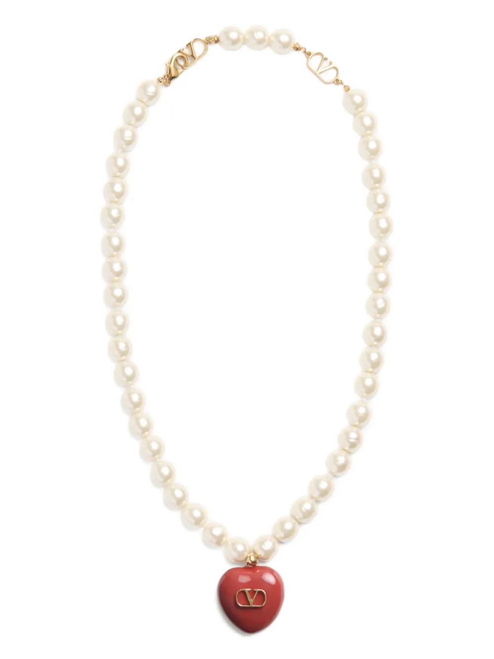 white/red lobster claw fastening gold-tone hardware VLogo Signature faux-pearl embellishment heart pendant adjustable-length chain