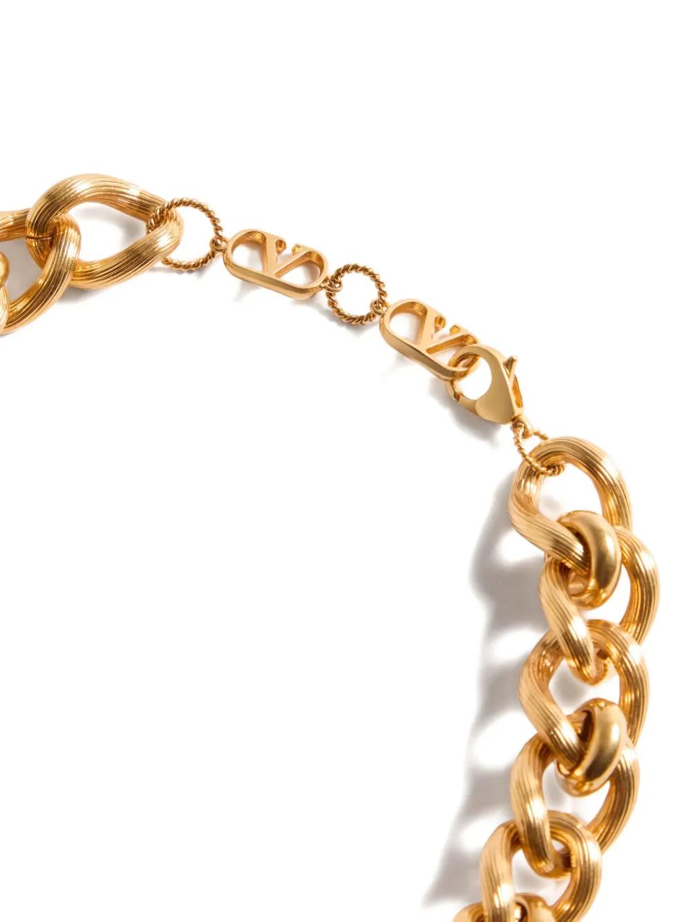gold-tone chunky chain design three heart charms enamel black and red charms sparkling heart charm logo detailing