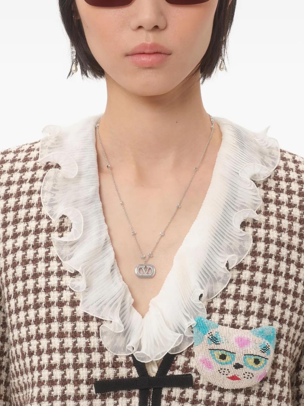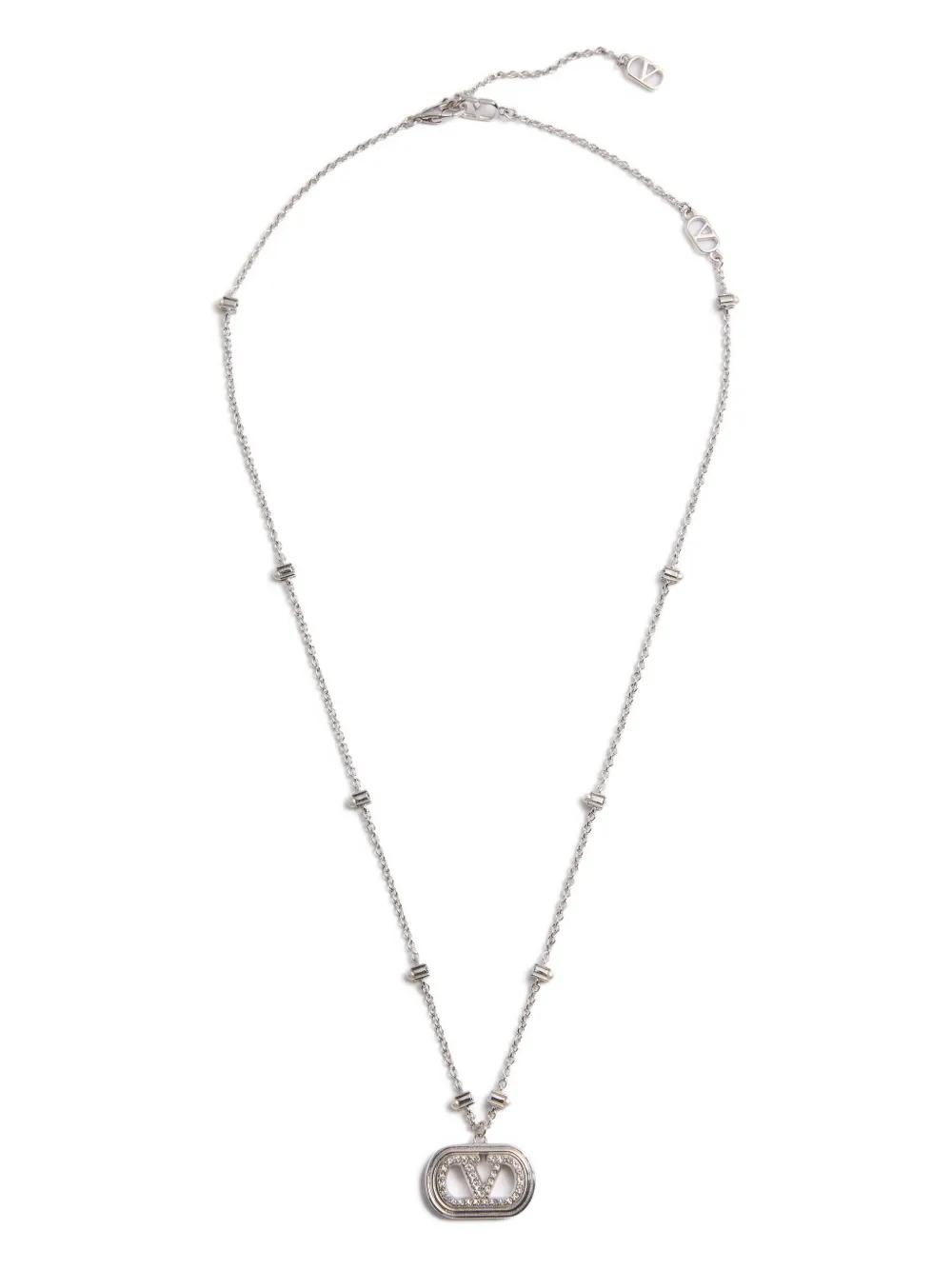 silver-tone rhodium finish logo pendant pearl-embellishment Swarovski crystal embellishment adjustable length lobster claw fastening