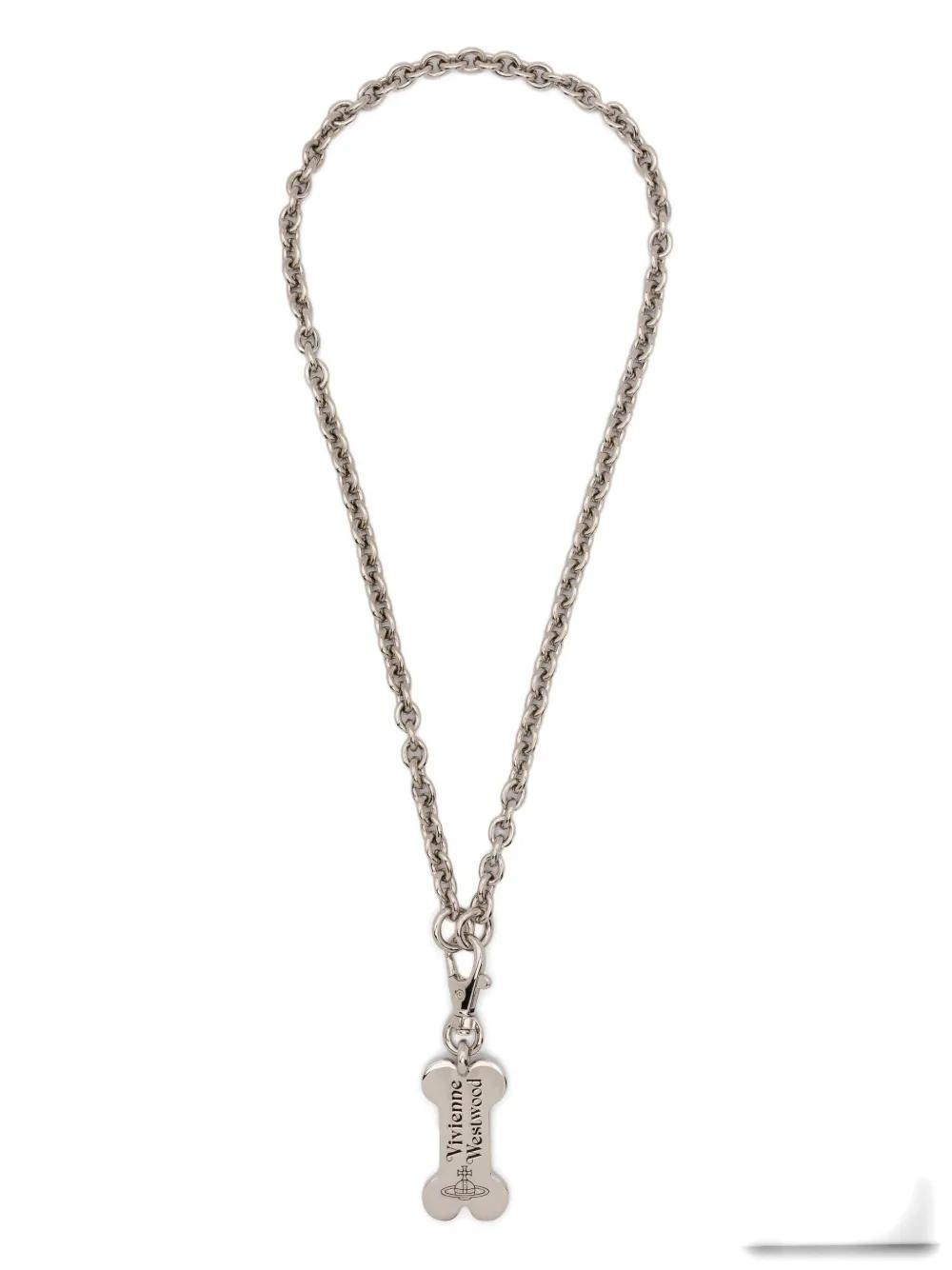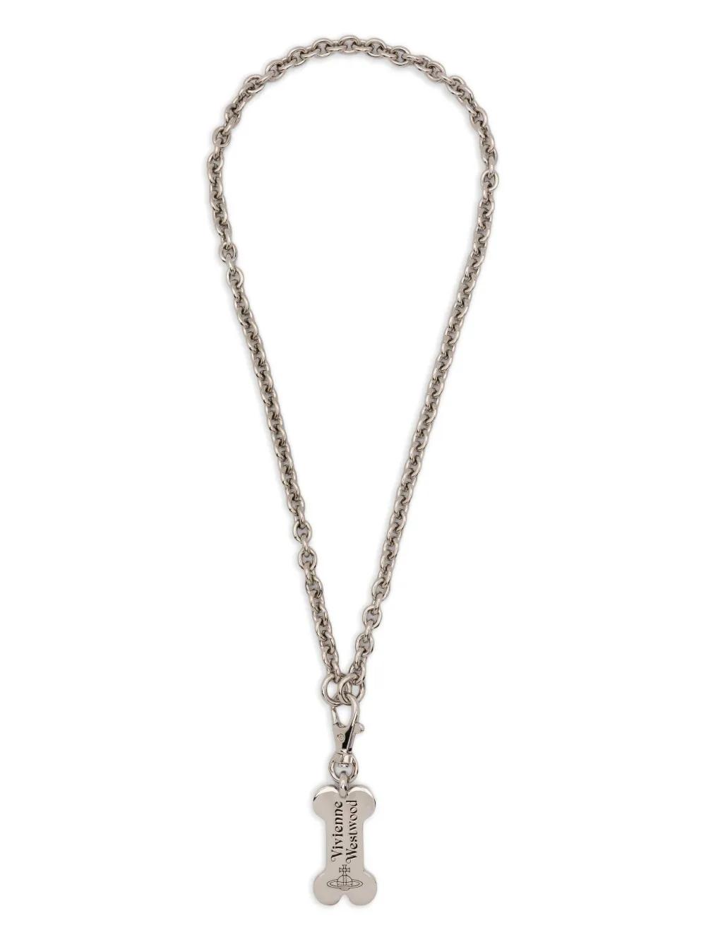 silver-tone bone pendant chain-link detailing lobster clasp fastening engraved logo