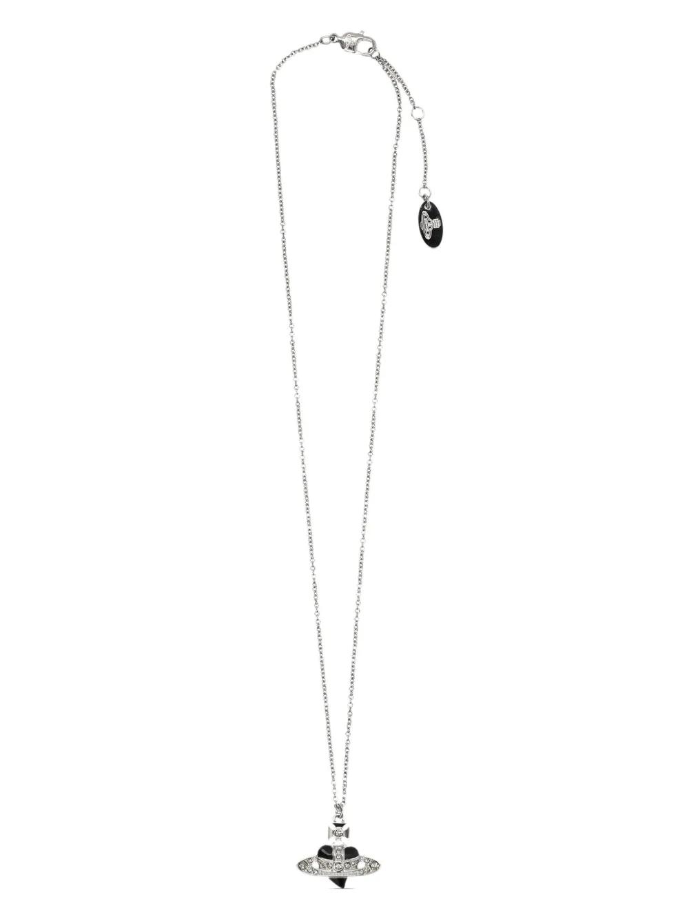 silver-tone/black polished finish delicate chain heart pendant signature Orb plaque detail enamel detail crystal embellishment lobster claw fastening adjustable fit