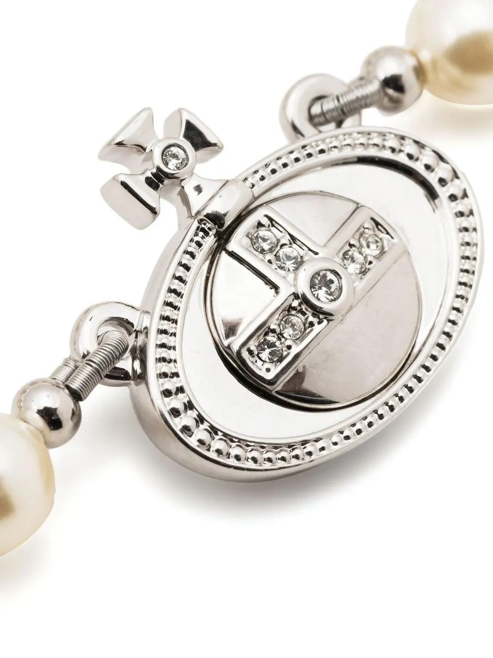 white/platinum brass silver-tone hardware faux-pearl detailing crystal embellishment signature Orb plaque detail drop design
