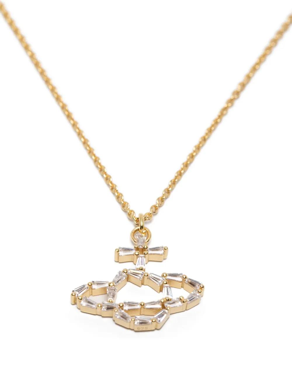 gold.tone cubic zirconia embellishment Orb pendant spring-ring fastening adjustable length Normal everyday use and external agents may reduce the lustre of gemstones and gold surfaces. To maintain, use specific, non-abrasive products specially meant for cleaning jewellery.