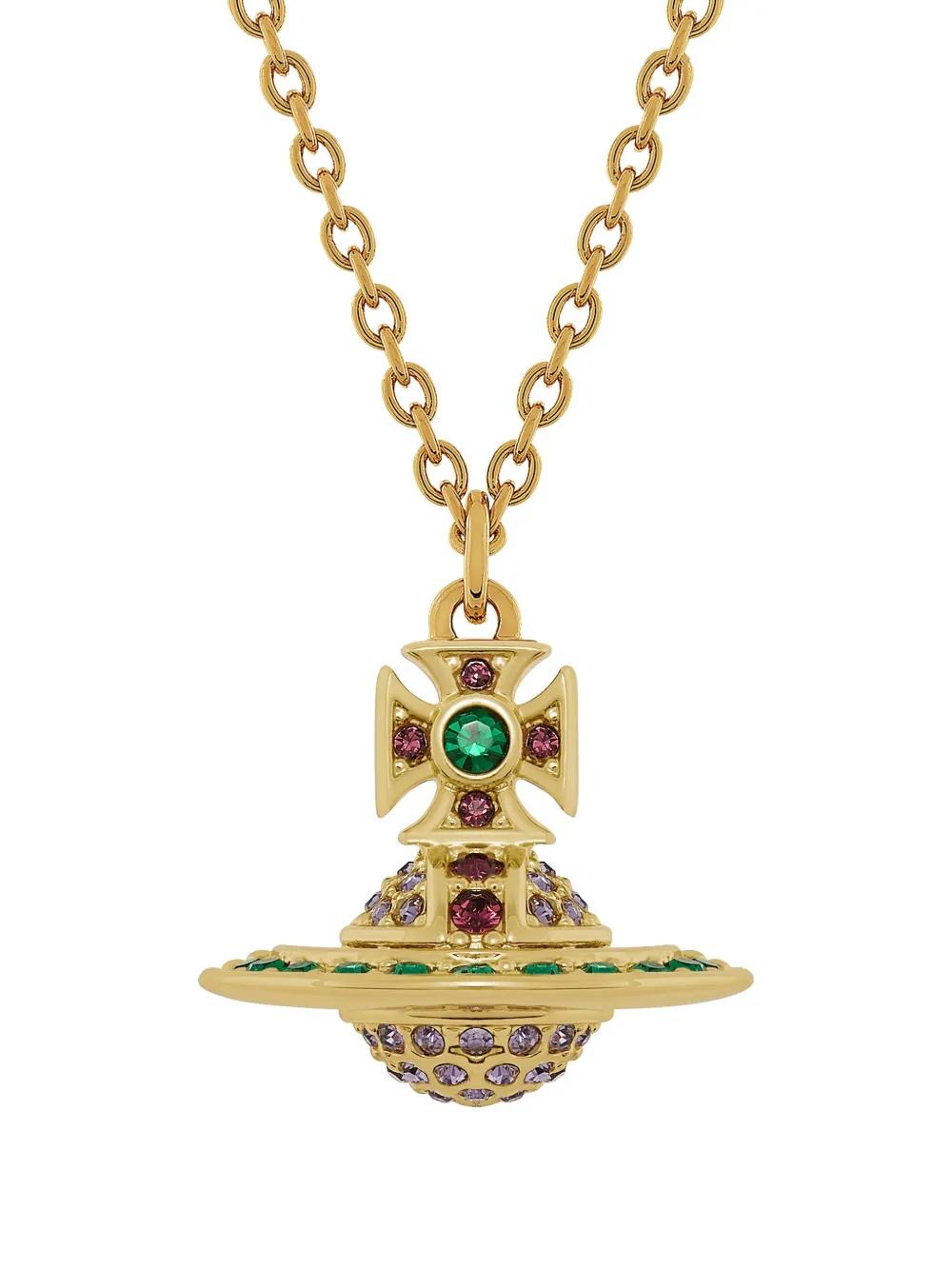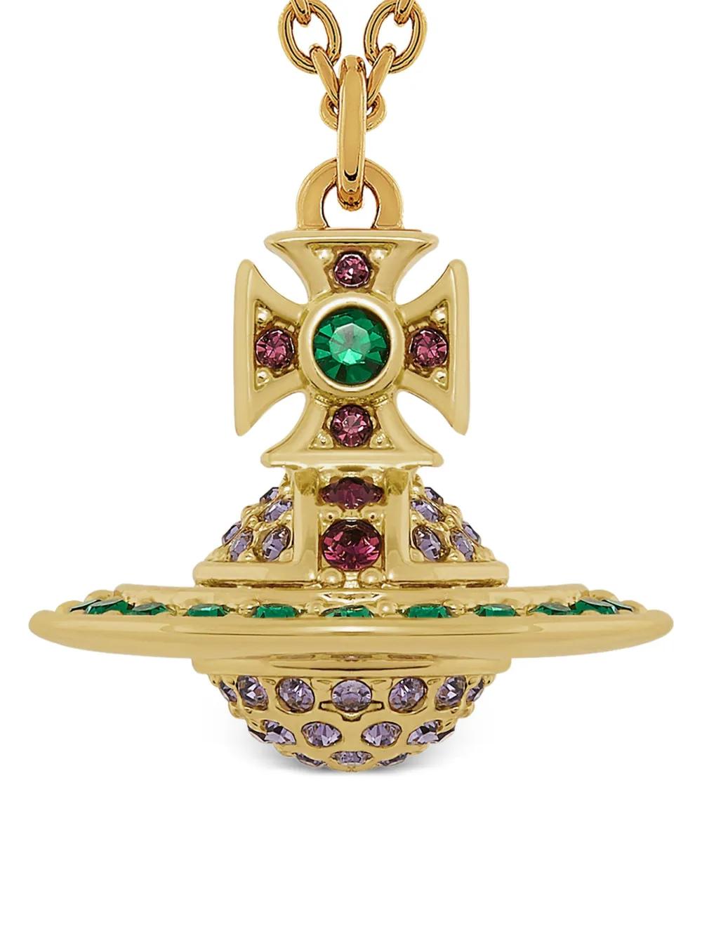 gold-tone Orb motif crystal embellishment cross pendant chain necklace